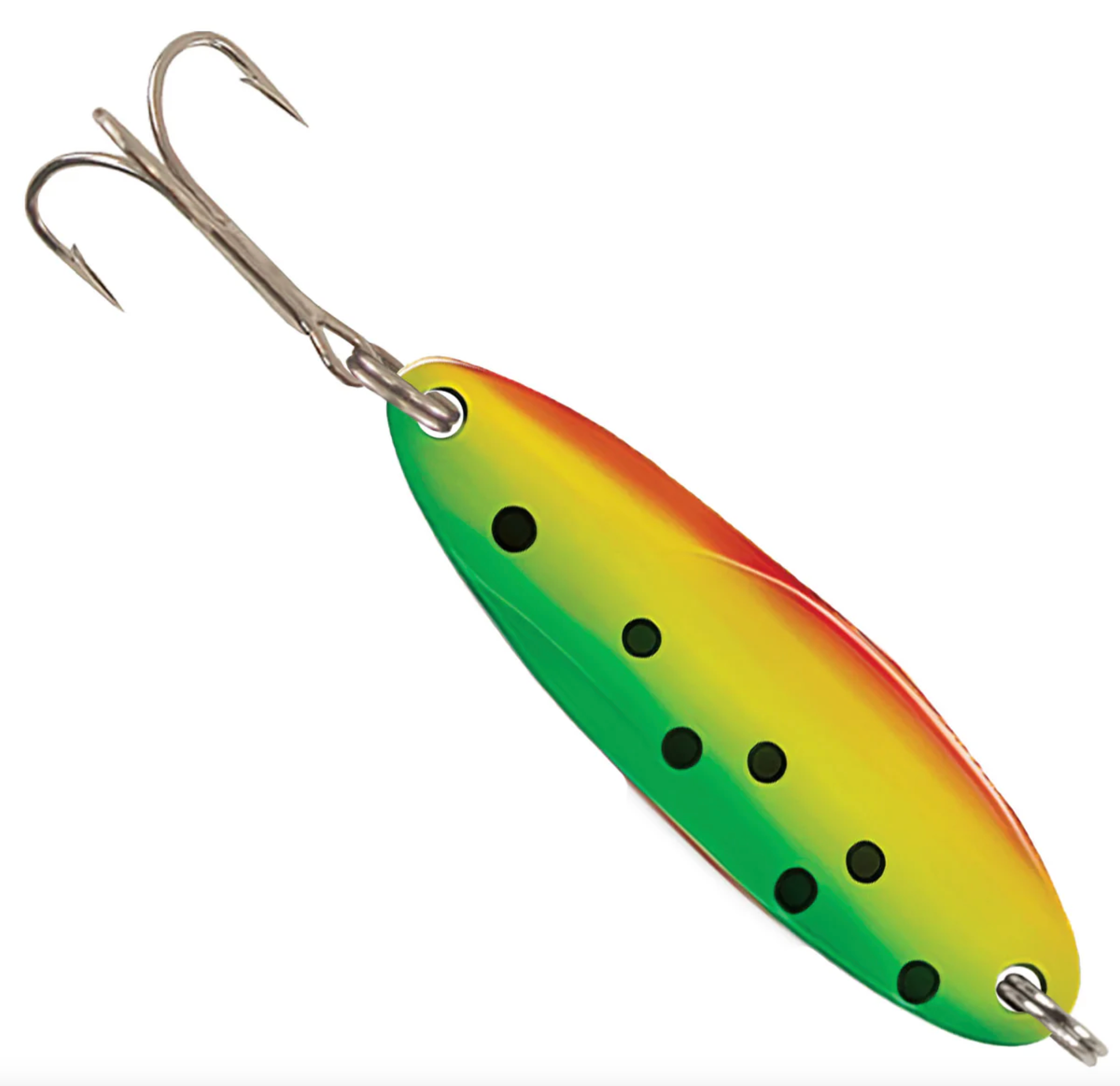 Kastmaster’s balance produces wild action without line twist! Because of its aerodynamic design, it’s the master distance caster, and catches fish from pan-sized trout to bragging-sized stripers – in fresh and salt water. The Kastmaster is precision machined. It will not break, bend or corrode and it retains its luster even after repeated exposure to salt water.