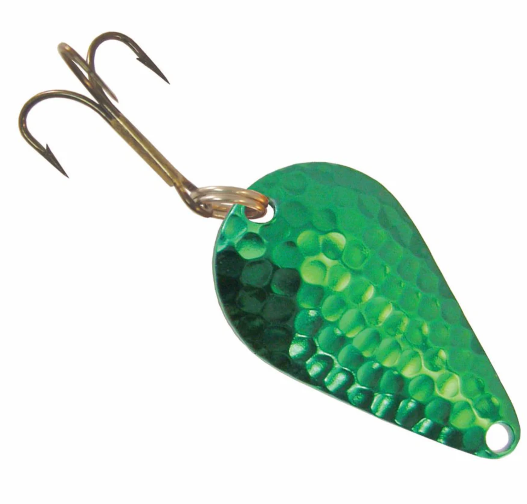These casting spoons are a favourite of stream and and river anglers all over the Great Lakes and Northwest. They are proven winners for steelhead when cast into moving water and allowed to wobble as they are drifted on a tight line near the bottom of a stream. They are equally effective for salmon under similar circumstances.
