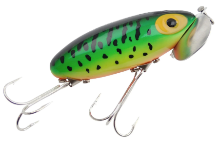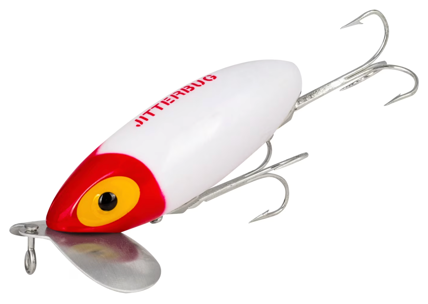 The Arbogast Jitterbug is the most-respected topwater lure for night fishing, but also power ignites explosive strikes throughout the day. The Jitterbug's double cupped lip, placed at precisely the correct angle, produces the loud, rhythmic, surface-busting sound that is proven to be irresistible to bass, pike and other gamefish.