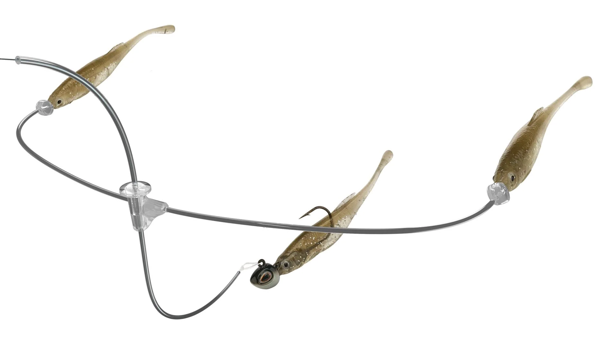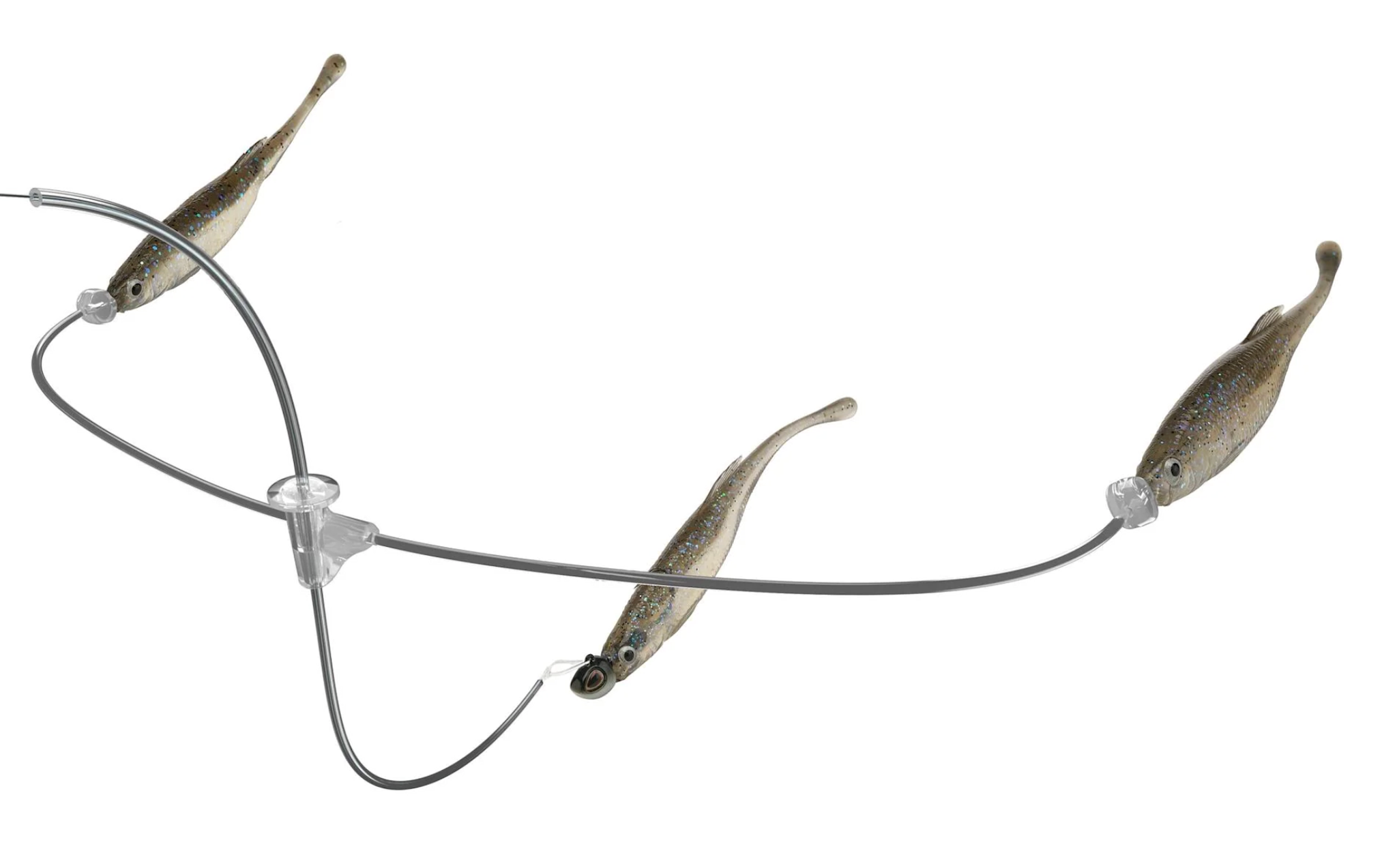 Conceived from the ancestral link of predator, prey and bioenergetics, the Berkley Triple Minnow Rig revolutionizes the art of presenting a jighead and minnow. Featuring three minnows working in harmony, the Triple Minnow Rig presents a discreet bait ball within the methodology of mid-strolling. Developed in the depths of Berkley Labs, its line-through design ensures the main-line minnow rolls effortlessly, delivering flawless, lifelike action. Clear fluorocarbon and thermoplastic construction minimize visibility, making the rig nearly invisible underwater. Secured with precision, it stays in place without damaging the line while reducing tangles. Harness the rhythm of nature and leverage the power of presenting a bait ball whilst using the most effective finesse technique with the Berkley Triple Minnow Rig.