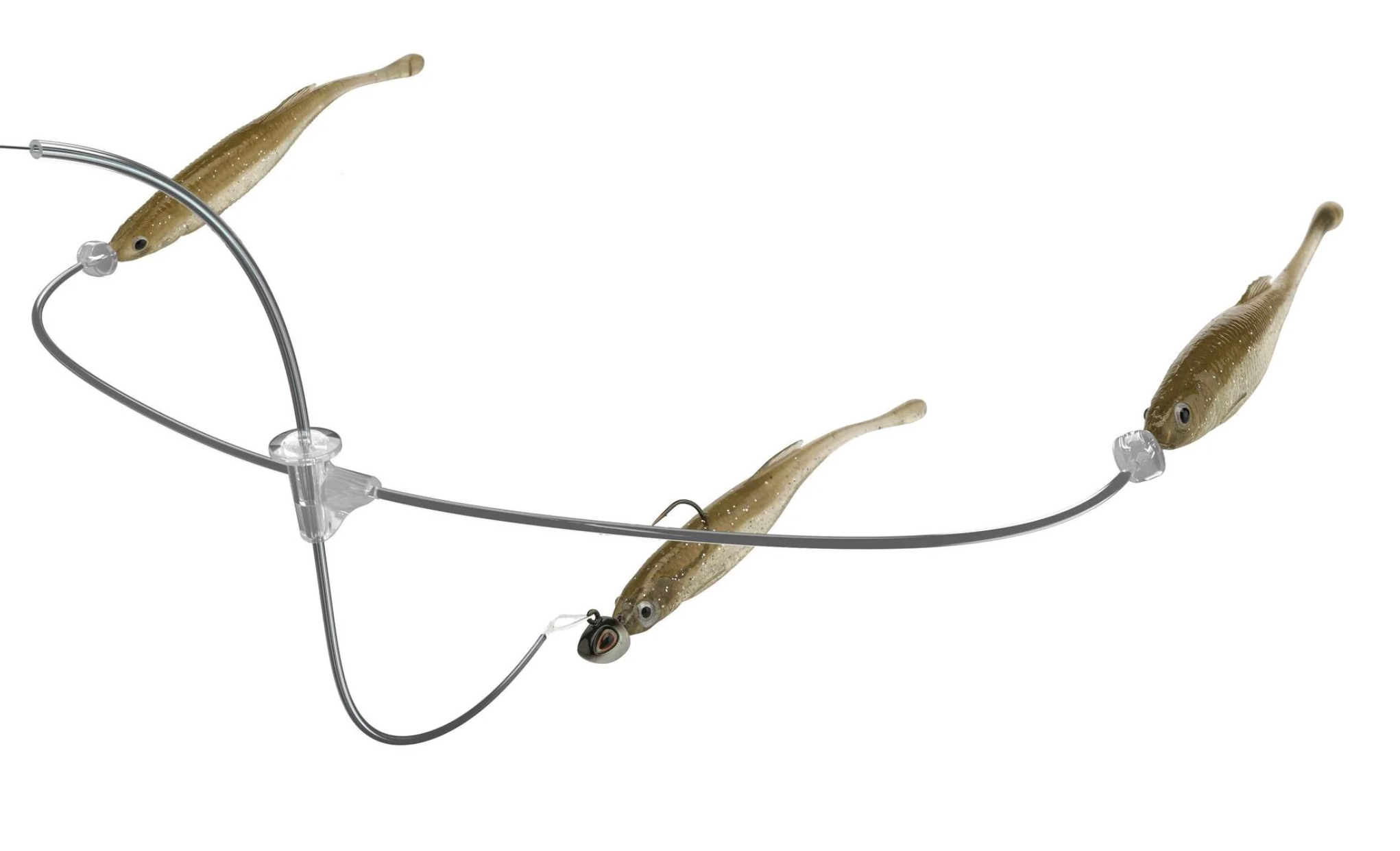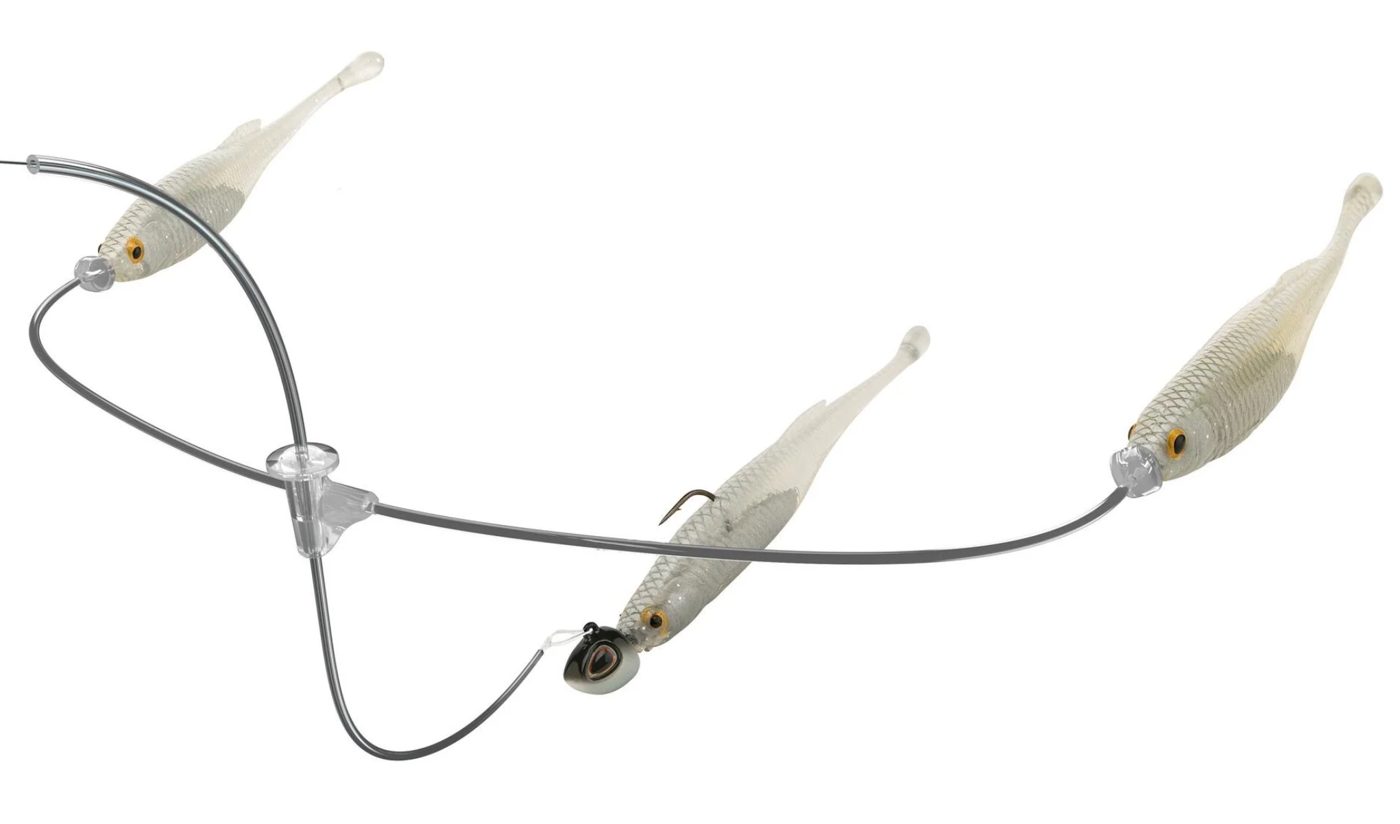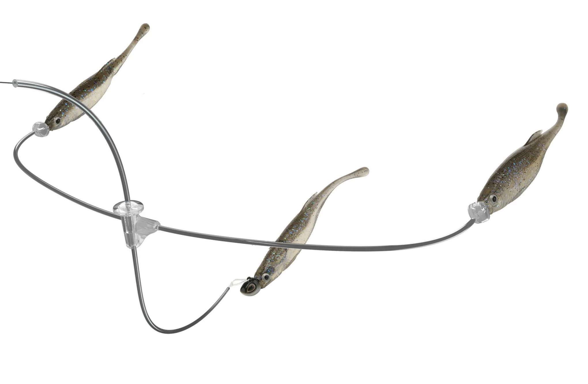 Conceived from the ancestral link of predator, prey and bioenergetics, the Berkley Triple Minnow Rig revolutionizes the art of presenting a jighead and minnow. Featuring three minnows working in harmony, the Triple Minnow Rig presents a discreet bait ball within the methodology of mid-strolling. Developed in the depths of Berkley Labs, its line-through design ensures the main-line minnow rolls effortlessly, delivering flawless, lifelike action. Clear fluorocarbon and thermoplastic construction minimize visibility, making the rig nearly invisible underwater. Secured with precision, it stays in place without damaging the line while reducing tangles. Harness the rhythm of nature and leverage the power of presenting a bait ball whilst using the most effective finesse technique with the Berkley Triple Minnow Rig.