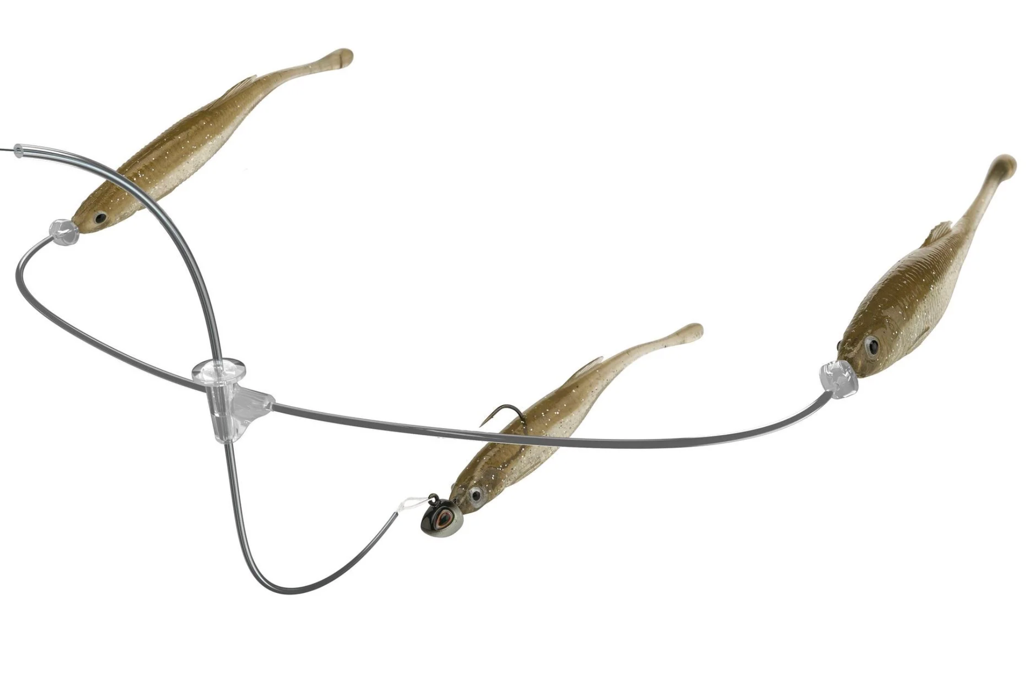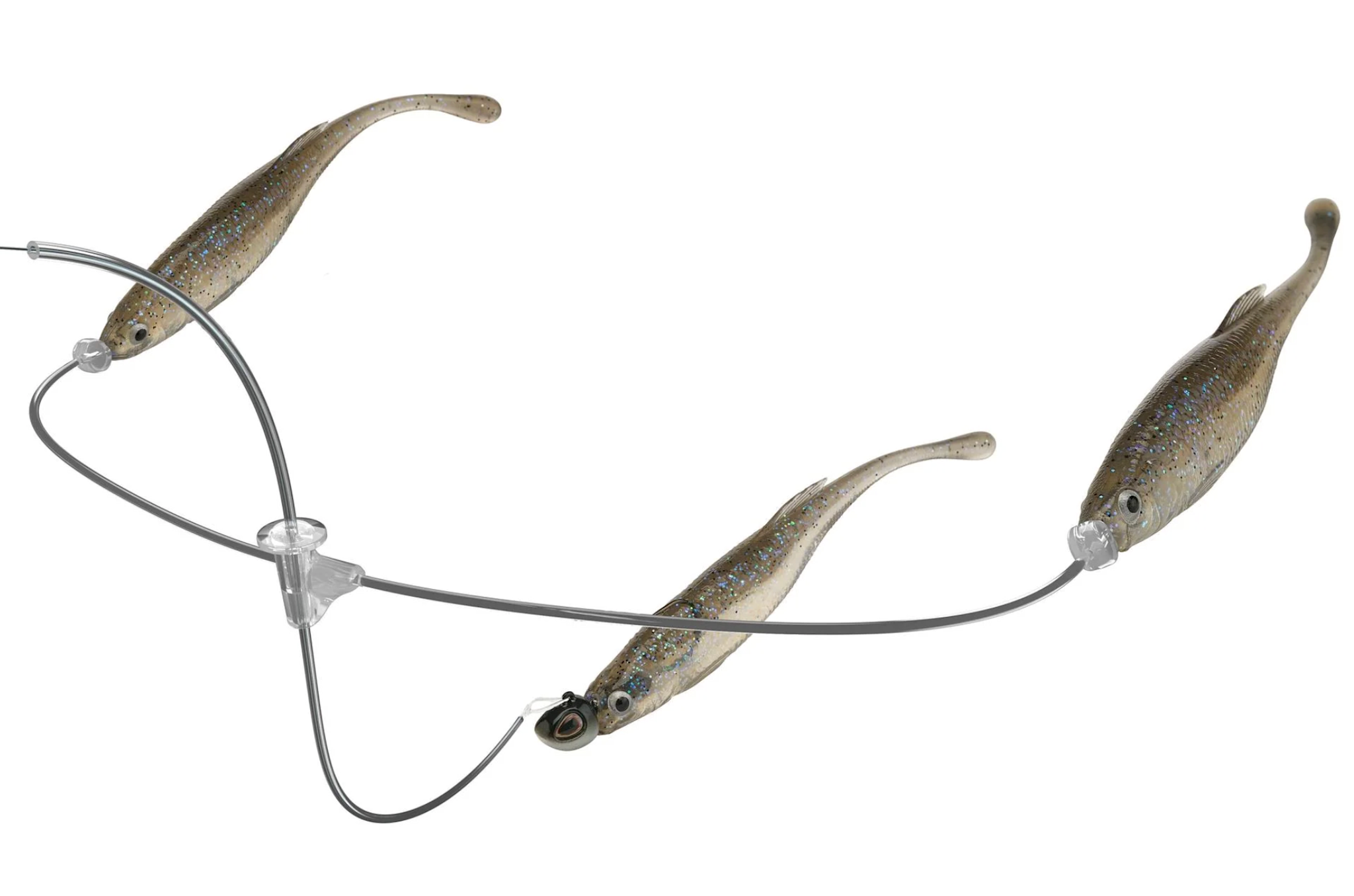 Conceived from the ancestral link of predator, prey and bioenergetics, the Berkley Triple Minnow Rig revolutionizes the art of presenting a jighead and minnow. Featuring three minnows working in harmony, the Triple Minnow Rig presents a discreet bait ball within the methodology of mid-strolling. Developed in the depths of Berkley Labs, its line-through design ensures the main-line minnow rolls effortlessly, delivering flawless, lifelike action. Clear fluorocarbon and thermoplastic construction minimize visibility, making the rig nearly invisible underwater. Secured with precision, it stays in place without damaging the line while reducing tangles. Harness the rhythm of nature and leverage the power of presenting a bait ball whilst using the most effective finesse technique with the Berkley Triple Minnow Rig.