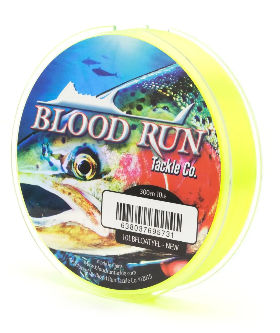 True float fishing monofilament line with custom line conditioners mixed with nylon resins to create the perfect line for drift and float fishing applications.Blood Run float fishing monofilament line has excellent knot strength, and will not absorb water or Ultra Violet rays which will impact traditional monofilament fishing lines.Available in a variety of colours for different visibility conditions for both the fisherman to mend long drifts, as well as for low light conditions.Super slippery and abrasion resistant for ease of sliding shot patterns and standing up to snagging trees, bushes, rocks and logs....this is one tough float line designed for hardcore float fishermen.