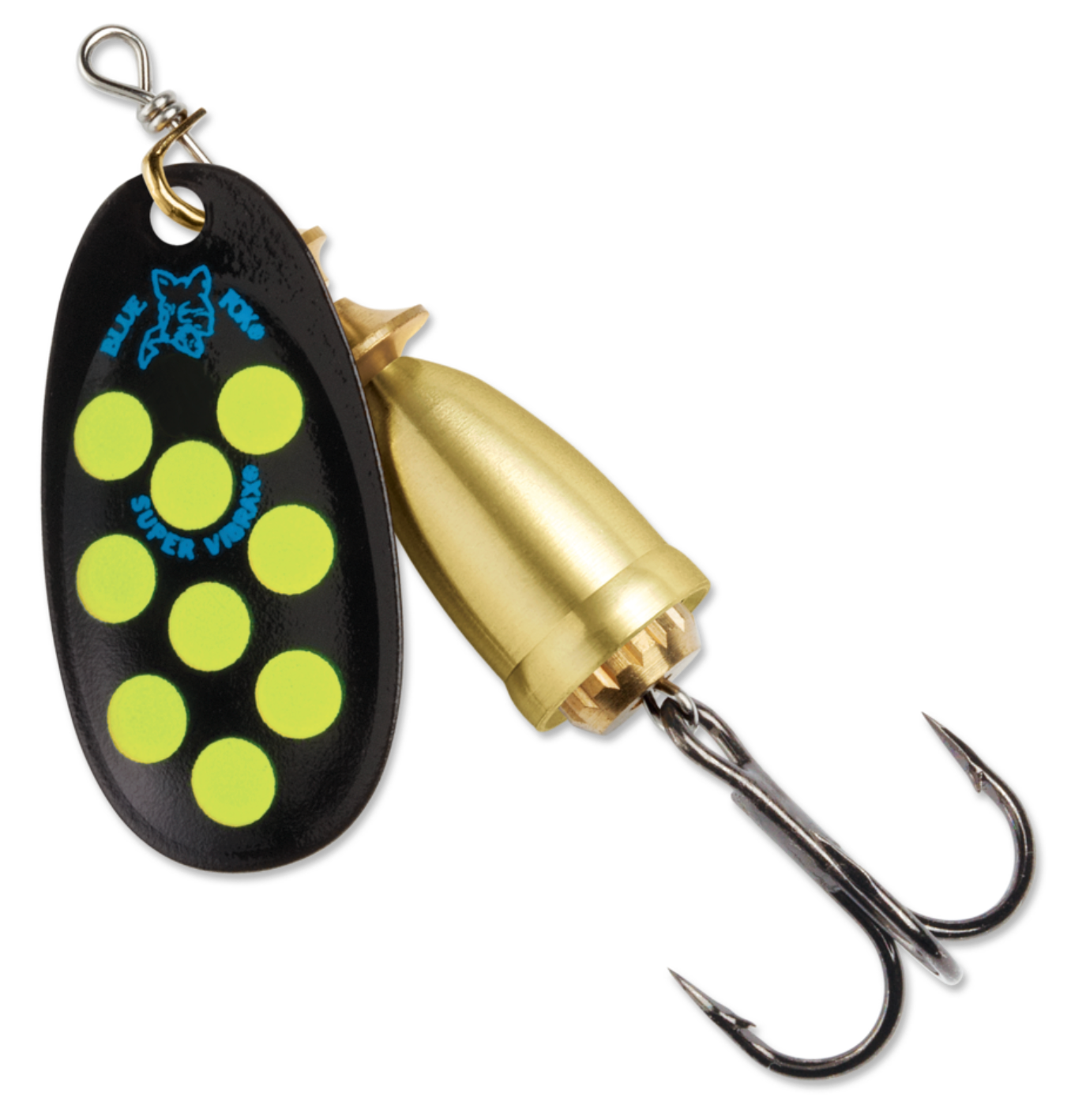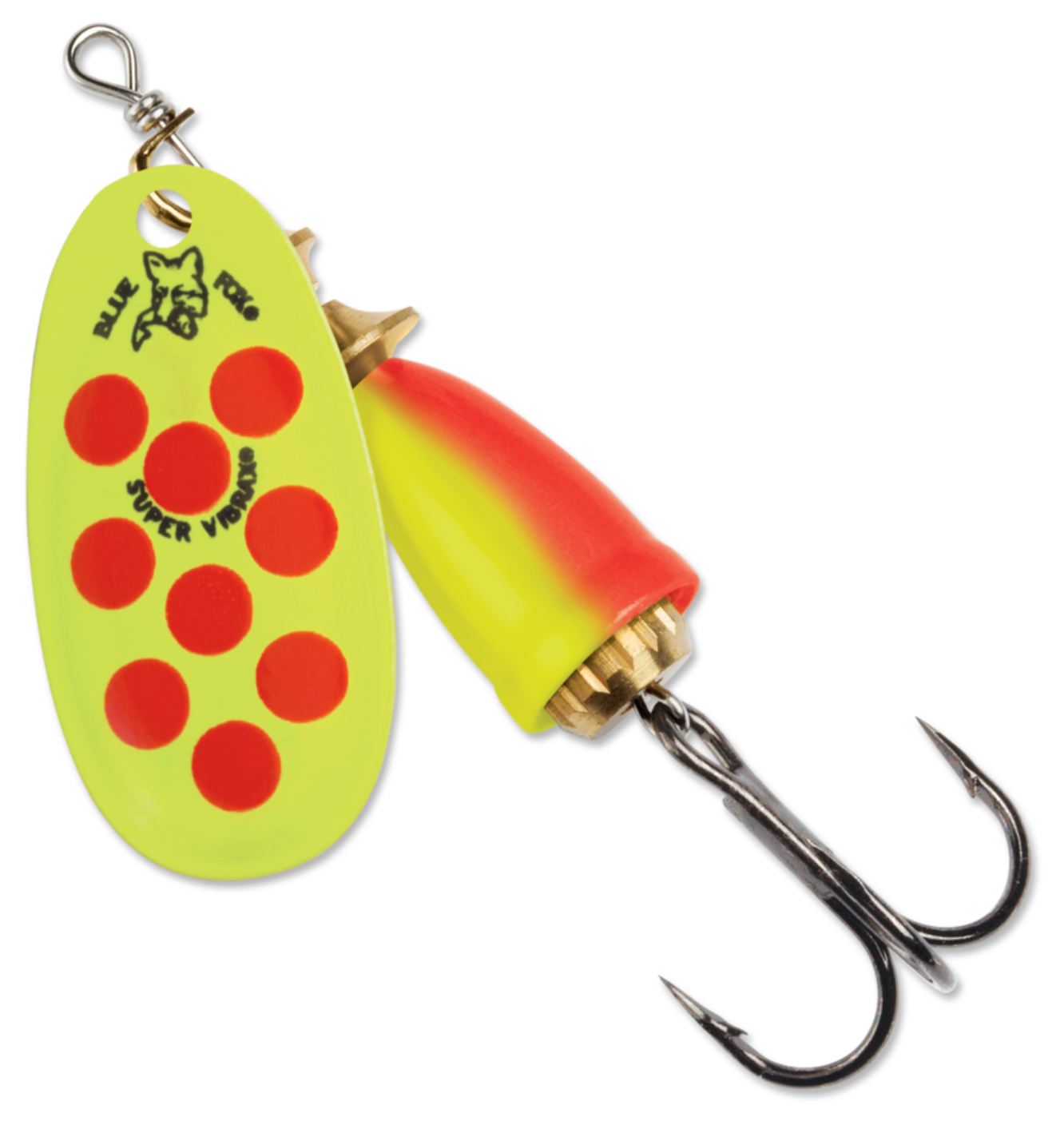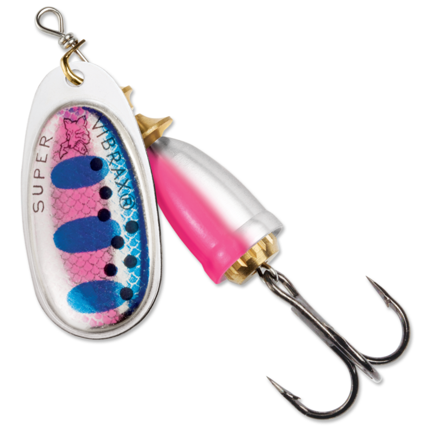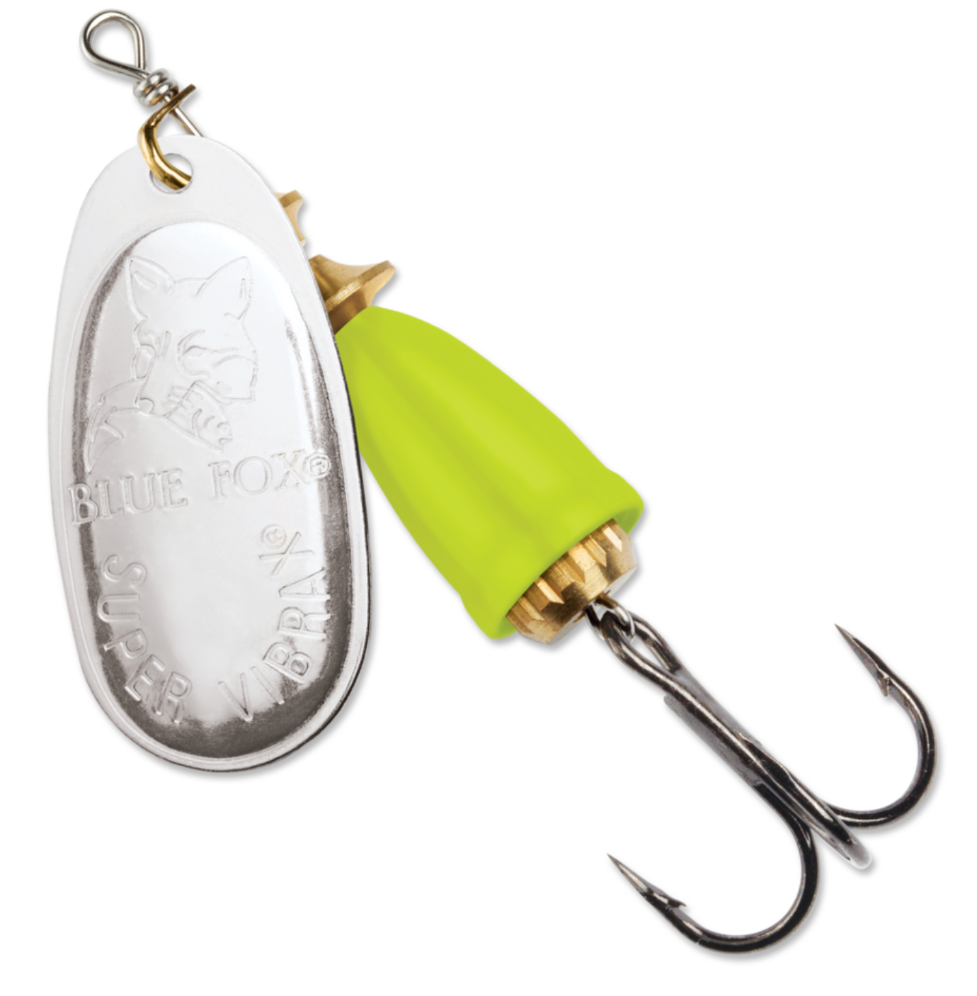Runs 2 feet to 6 feet. The patented two-part body emits low-frequency sound vibrations that attract fish and trigger strikes while virtually eliminating line twist. The Classic Vibrax® gets a tasty candyback! Colored bell is accented with metallic flecks. Blade is tipped in matching color, while blade back is finished with transparent, fluorescent coordinating color. Flaw-free silver plating, fine tolerances and super-sharp hooks are long-standing features of this low frequency emitting patented two-part body spinner.
