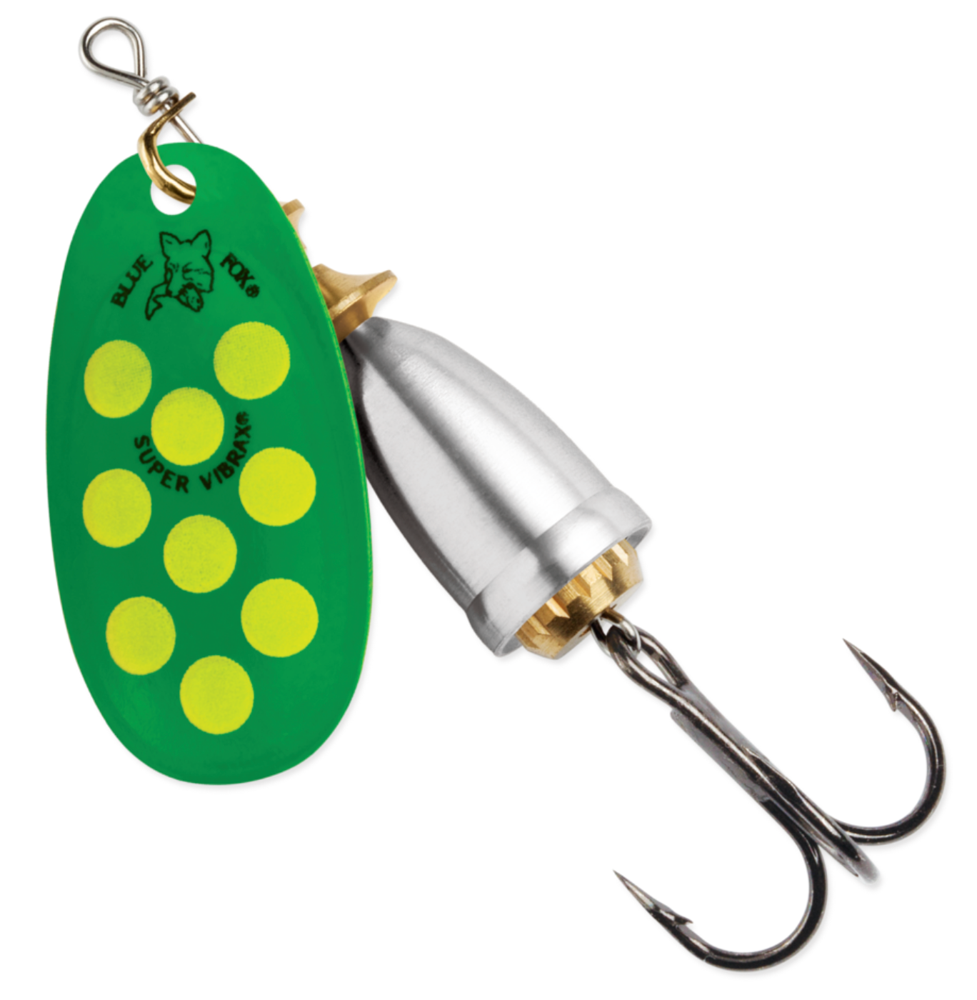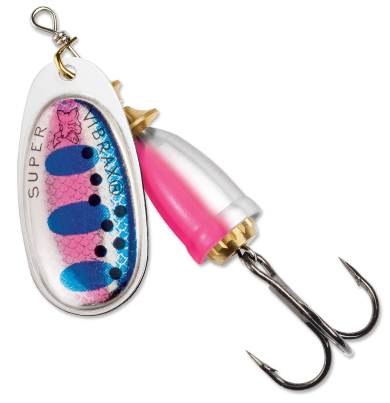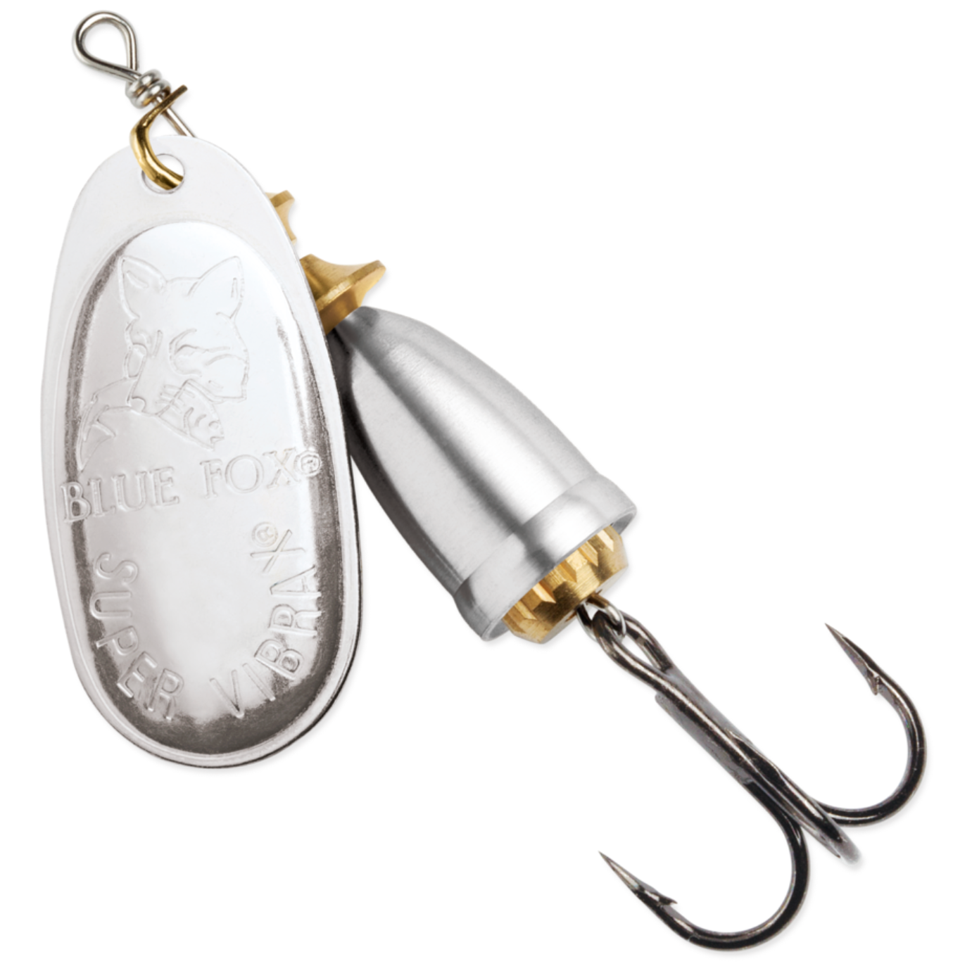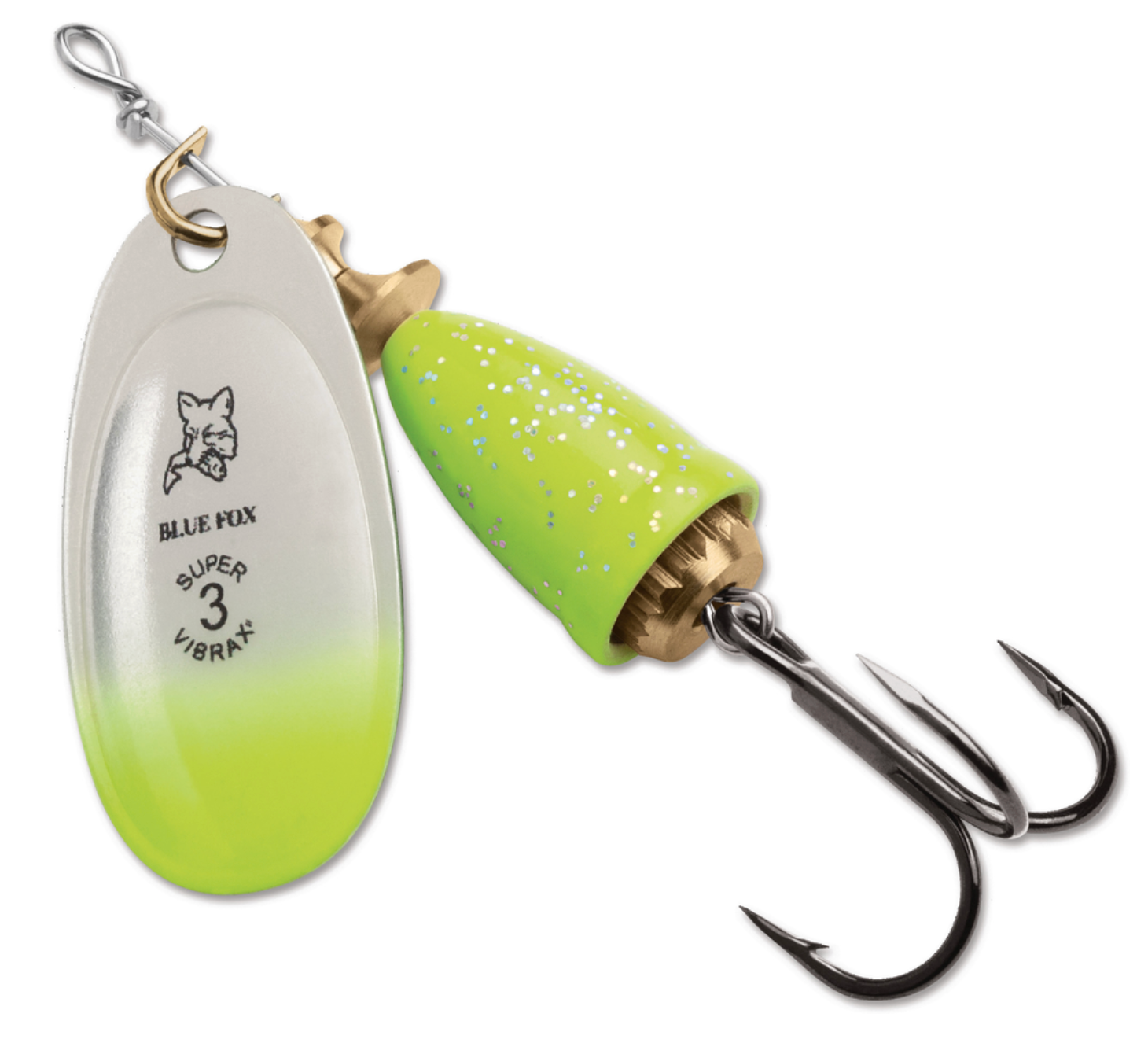 Runs 2 feet to 6 feet. The patented two-part body emits low-frequency sound vibrations that attract fish and trigger strikes while virtually eliminating line twist. The Classic Vibrax® gets a tasty candyback! Colored bell is accented with metallic flecks. Blade is tipped in matching color, while blade back is finished with transparent, fluorescent coordinating color. Flaw-free silver plating, fine tolerances and super-sharp hooks are long-standing features of this low frequency emitting patented two-part body spinner.