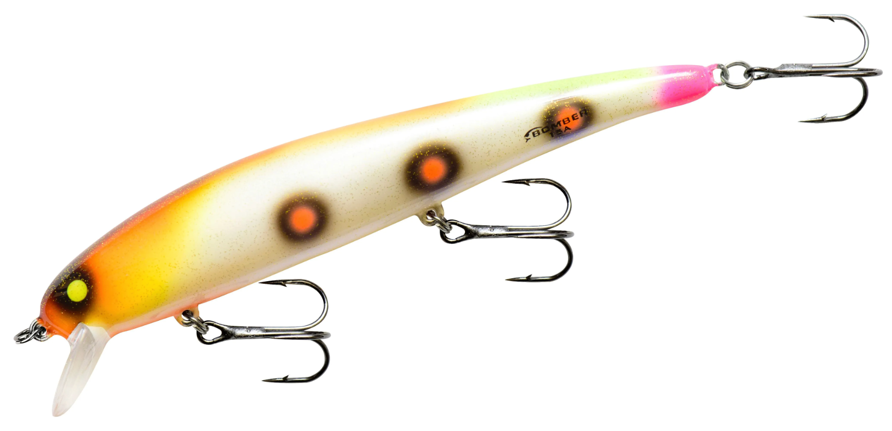 The Bomber Long A is a legendary slender minnow jerkbait made for twitching for bass and trolling/casting for big walleyes, salmon and other gamefish. The Long A mimics a minnow’s lifelike swimming action when trolled or retrieved at a constant pace, but darts erratically to the side when retrieved with a “twitch-twitch-pause” cadence. Multiple color patterns means there’s a Long A perfect for your day of fishing.