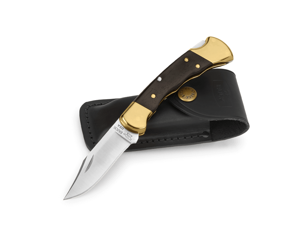 Buck 112 Ranger Finger Grooved 3" Folding Knife 420 HC Steel Blade, Genuine Ebony Handle with Brass Bolster