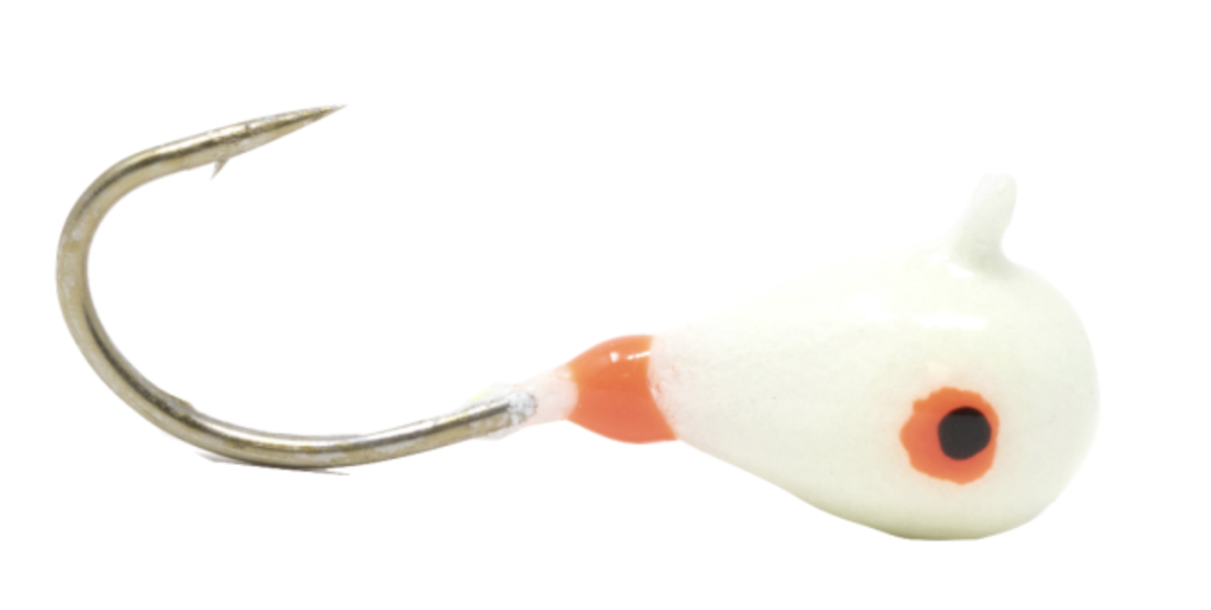 The Drop Jig XXL weighs in at a full 1/8 oz. but comes with a compact 7 mm tungsten body. It features an XXL #4 Hook - two hook sizes larger than The Drop for large panfish and all gamefish species. XXL size means larger wire diameter resulting in a stronger hook with a longer shank for stringing more live bait and larger plastics. Plus, the hook has a larger gap for better hookups and a larger tie-eye for cold hands, old eyes, and larger line diameters.
