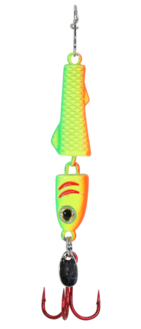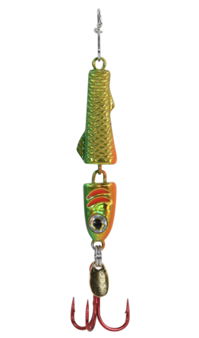 The Jointed Pinhead has been a staple in ice anglers tackle boxes for many years. The next generation of the Jointed Pinhead is here with the Jointed Pinhead Pro! The Jointed Pinhead Pro still has its sleek design with the joint in the middle for extra action and movement to attract even more fish. This spoon is now made of environmentally friendly Zinc Alloy that provides a unique flash, sound, and vibration in the water.