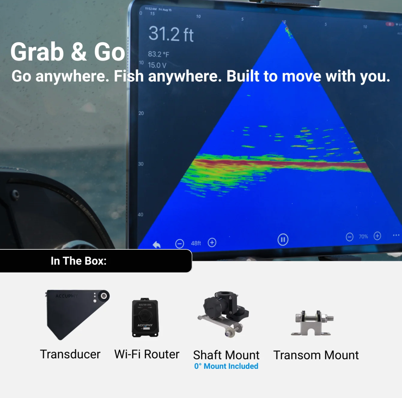 iOS & Android: Control and view live sonar data with Accuphy Sonar app on compatible iOS and Android devices.