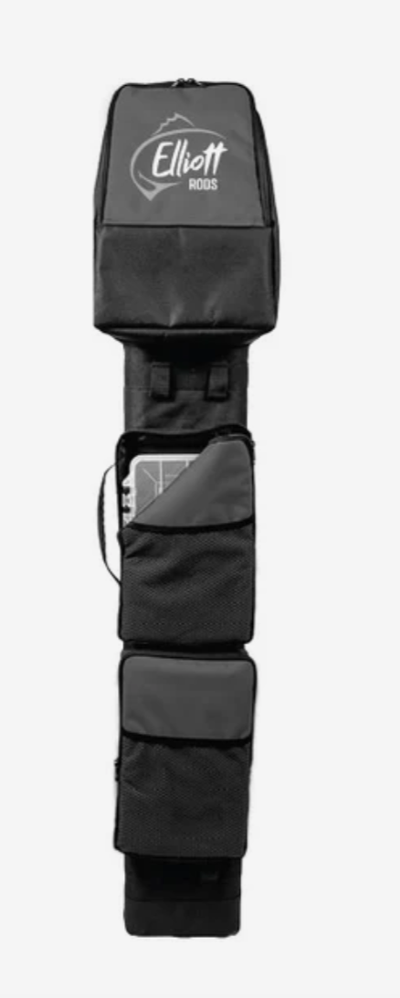 SPECIAL EDITION! This unique, premium ice rod & gear case in a special edition Elliott brand style. This rod & gear case holds four 48” ice rod/reel combos. Each rod safely sits in its own PVC tube for extra security and to prevent tangling. Two front zippered compartments and mesh pockets keep gear in easy reach and organized. Covered in high quality water resistant fabric and user friendly details like a shoulder strap, side handle and hanging loop as well as ratchet strap loops for worry free transport on ATVs & snowmobiles.