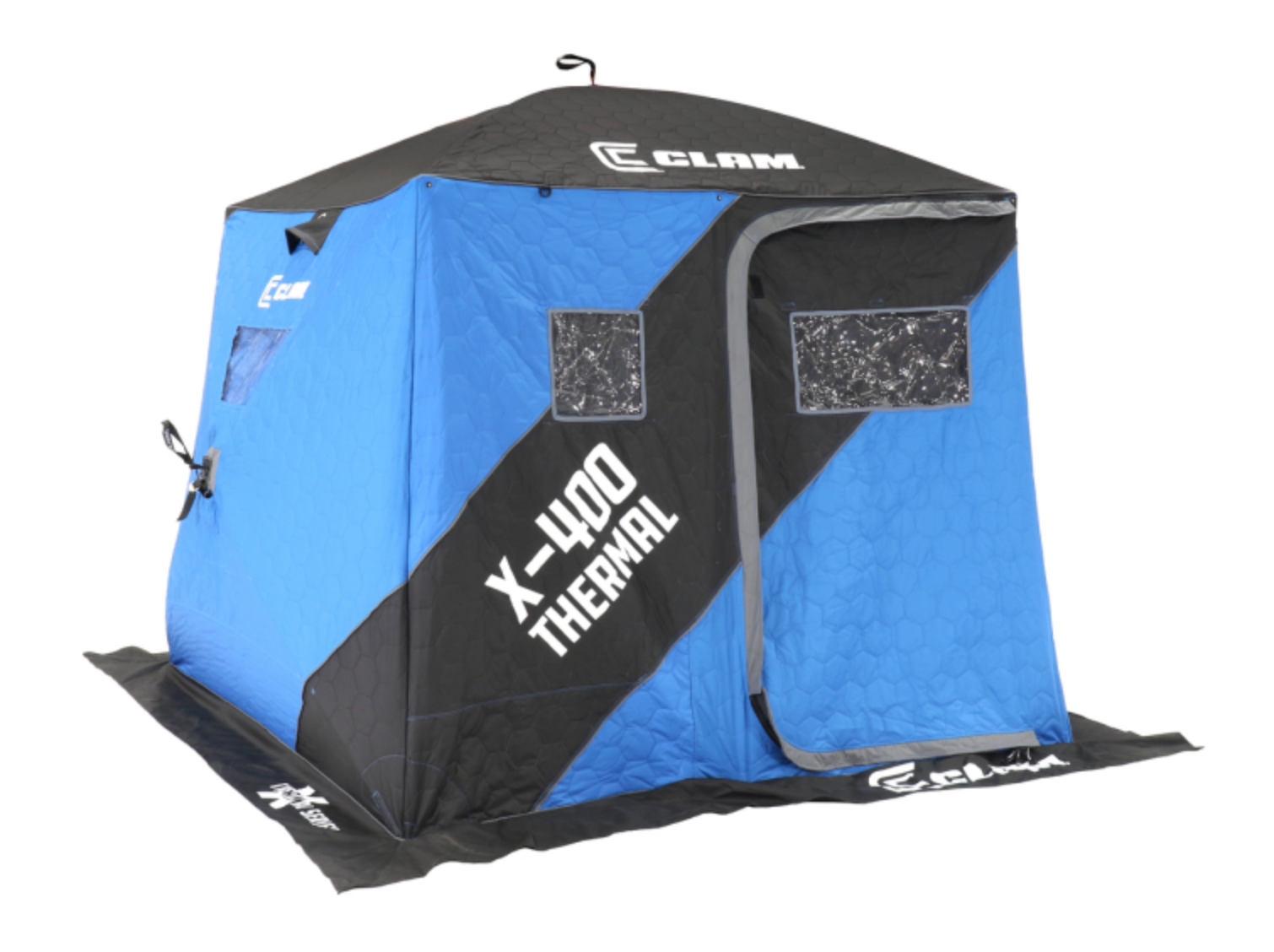 The X-400 Thermal Hub boasts 64 square feet of fishable area but packs down small for easy transport. This 4-sided portable hub house has plenty of room for gear and other anglers! Ice anglers will also enjoy the unique X-series features and the Max Entry door that allows for easy entry into the ice shelter. Unlike other doors on the market the Max Entry door allows you to bank in your shelter and still have full use of your door. As part of the X-Series of Clam hub shelters, the X-400 Thermal has industry leading hubs, poles, and thermal fabric that make this an excellent shelter for any ice angler. Fish longer and more comfortably with the convenience and durability of an X-400 Thermal Hub Shelter by Clam Outdoors!