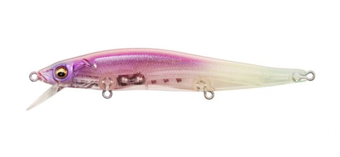 From a technical application standpoint, this pink-and-clear combination is a ‘finesse’ topwater or jerkbait colour designed for ultra-clear water and high-pressure situations. Because the body is mostly transparent, it doesn’t create a harsh shadow, making it less likely to spook wary fish in bright, sunny conditions. The pink back provides a high-vis tracking point for the angler, while the clear body allows the lure to disappear and reappear as it moves, mimicking the translucent quality of real glass minnows or shrimp.