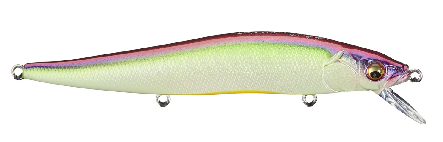 Unleashing a new weapon upon tournament waters, the Megabass Ito Vision 110 Silent Jerkbait adds lethal silent performance to the highly success line of Vision 110 Jerkbaits. Built with a single fixed weight so that it remains completely silent, the fixed weight also acts as a pivot point and helps deliver the signature Vision 110 action that erratically darts in all directions and sends out a tremendous amount of flash. While at rest the Vision 110 Silent perfectly suspends with a nose down posture and produces a subtle lifelike quiver – almost as if a baitfish were trembling in anticipation.