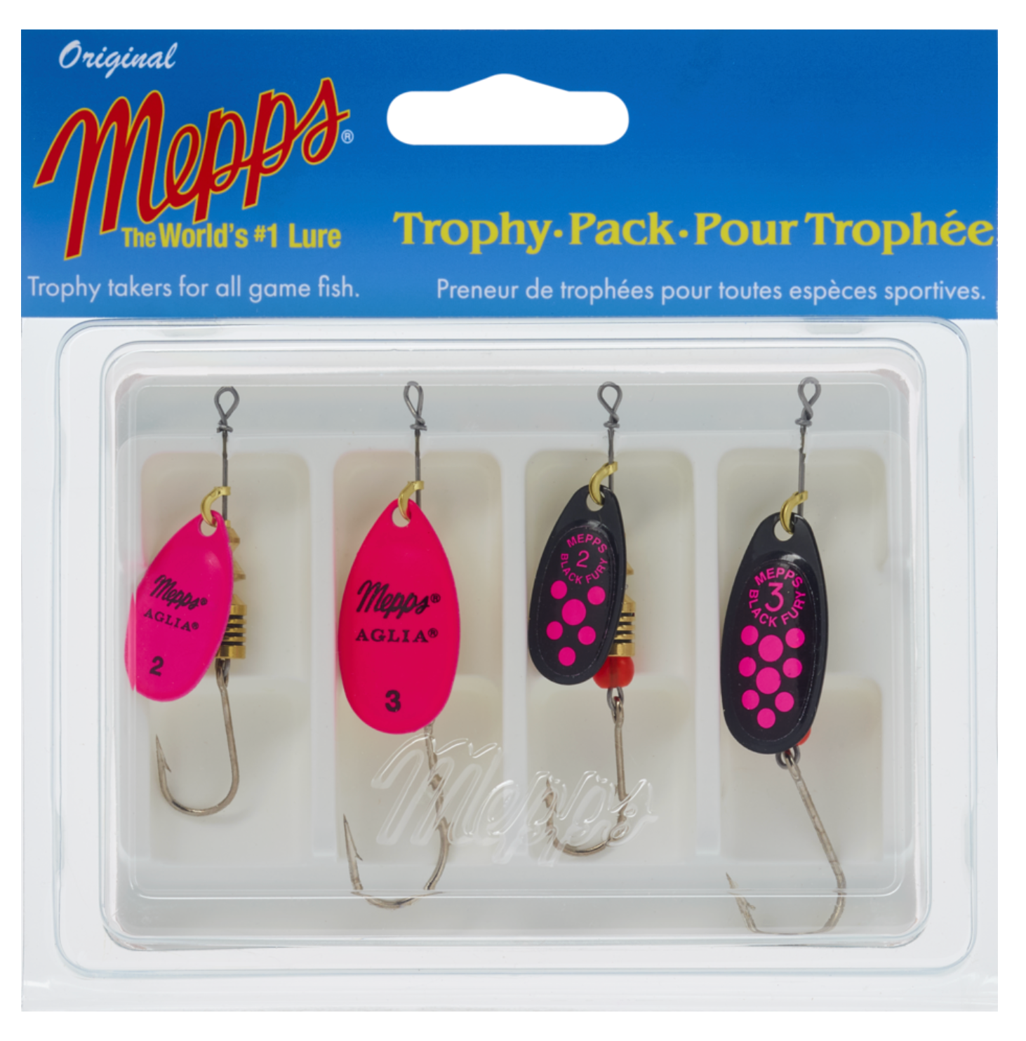 Mepps spinners and spoons for all fish in all waters. Mepps spinner is a marvelous lure, precisely engineered to start spinning smoothly the instant it enters the water. The cone of rotation constantly adapts to the force of the current or retrieve so Mepps spinners continuously emits appropriate and measured vibrations. The elaborate profile of the Mepps Syclops gives 10 planes of light reflection and it swims with alternate undulations, fluttering and sideways deviations exactly like a live prey fish.