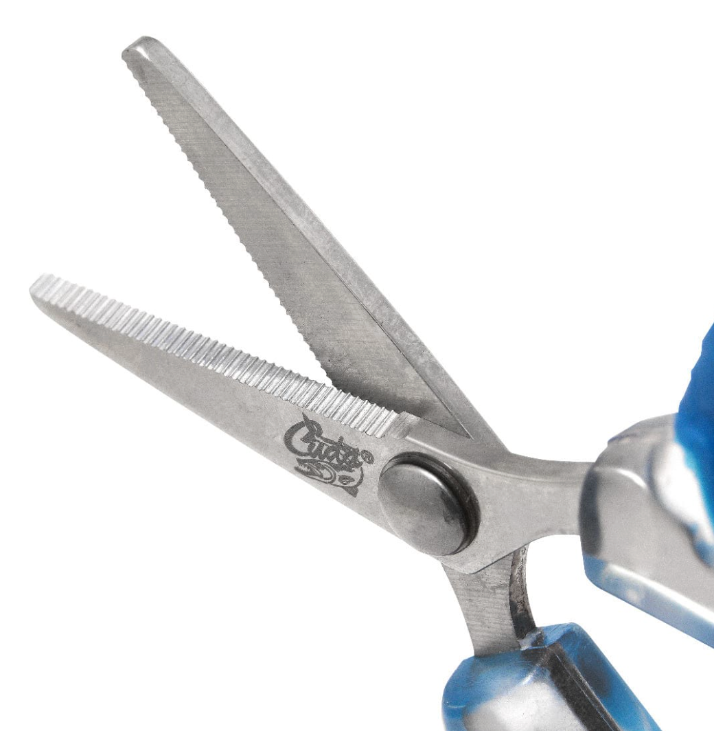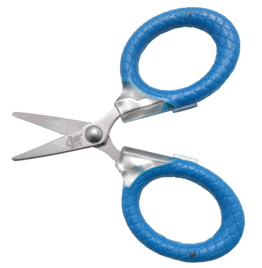 Cuda 3" Micro Scissors will cut mono and braided line. The Titanium Bonded blades feature dual micro-serrations and are 3x harder than untreated steel and will stay sharper for a longer period of time. Oversized Cuda scale pattern bows for non-slip comfort and control.