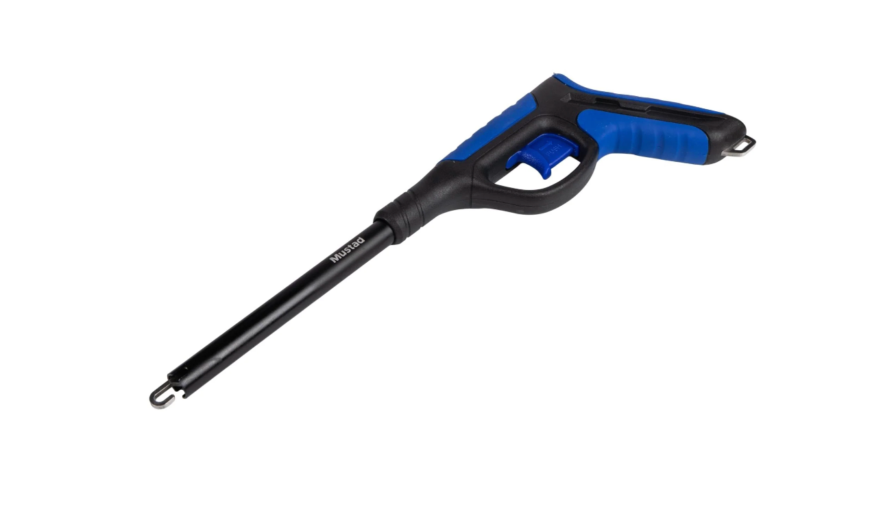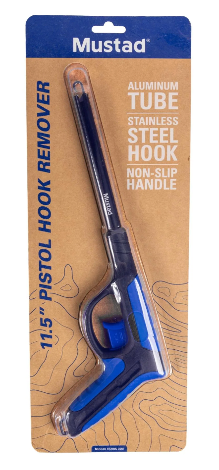 Keep your fingers from toothy fish with Mustad's Pistol Grip Hook Remover. The non-slip grip and ergonomic design make removing hooks safe and controlled.