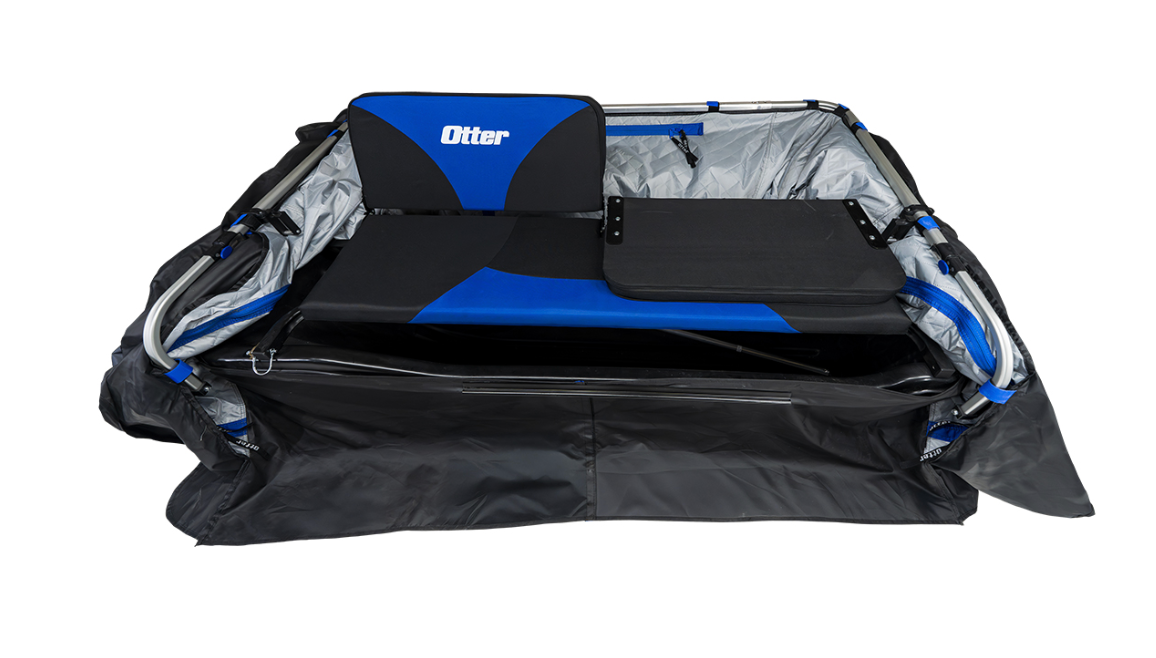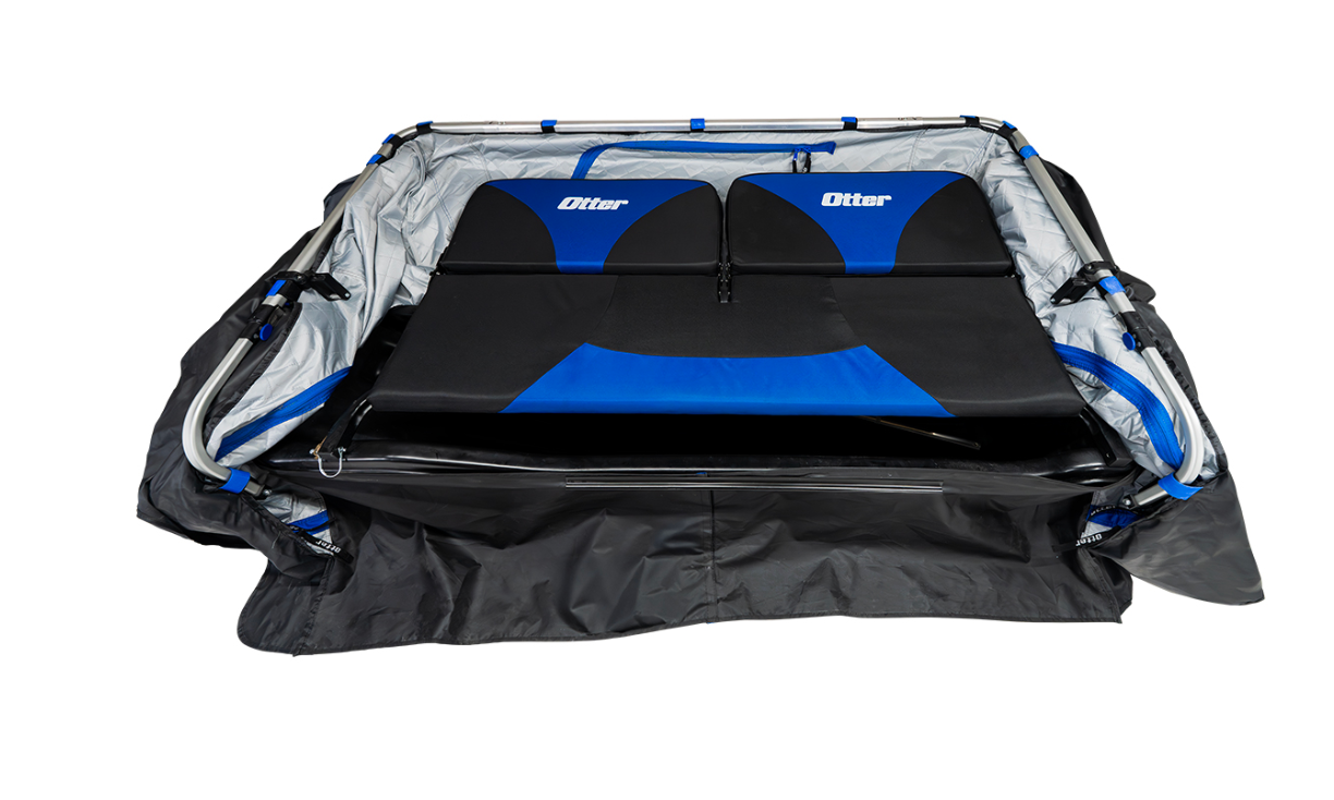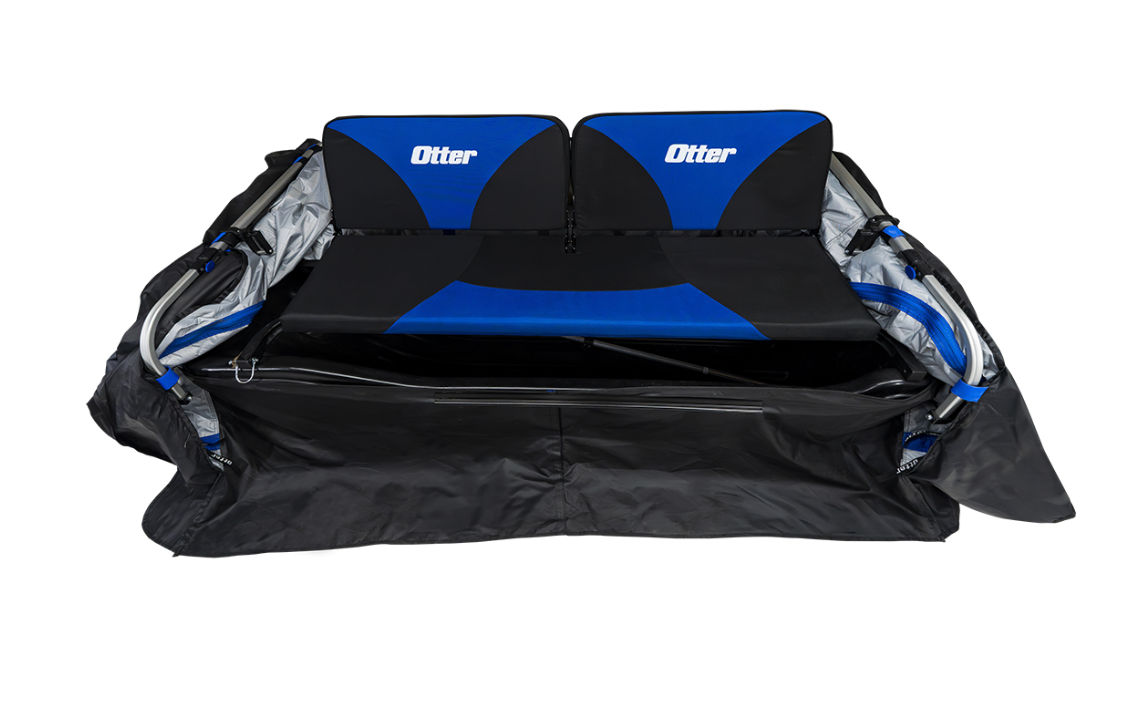 Otter XTR X-over shelters feature an industry first reclining bench seat that provides added versatility to already best-in-class comfort. Each side of the split bench can recline independently, creating more space for a workstation and quicker access to your gear. Better yet, recline both sides to form a flat bench for midday lull naps or overnight ice camping excursions.