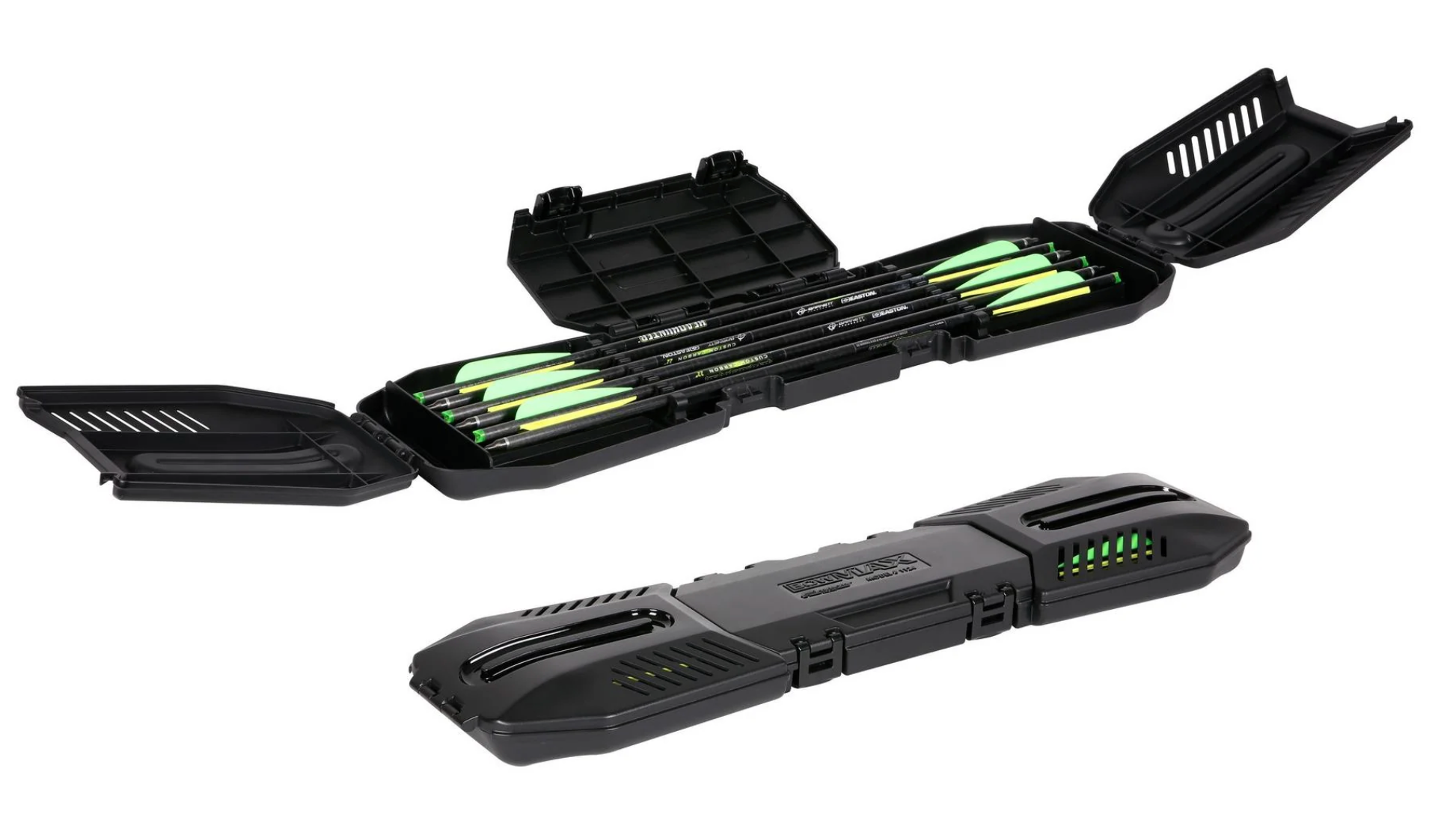 The compact, low-profile BowMax Crossbow Bolt Case is designed to securely hold six bolts up to 23.75" long with broadheads attached, and features durable latch closures plus internal storage for small accessories. It can even attach to your bow case for convenient transportation on the range or in the field