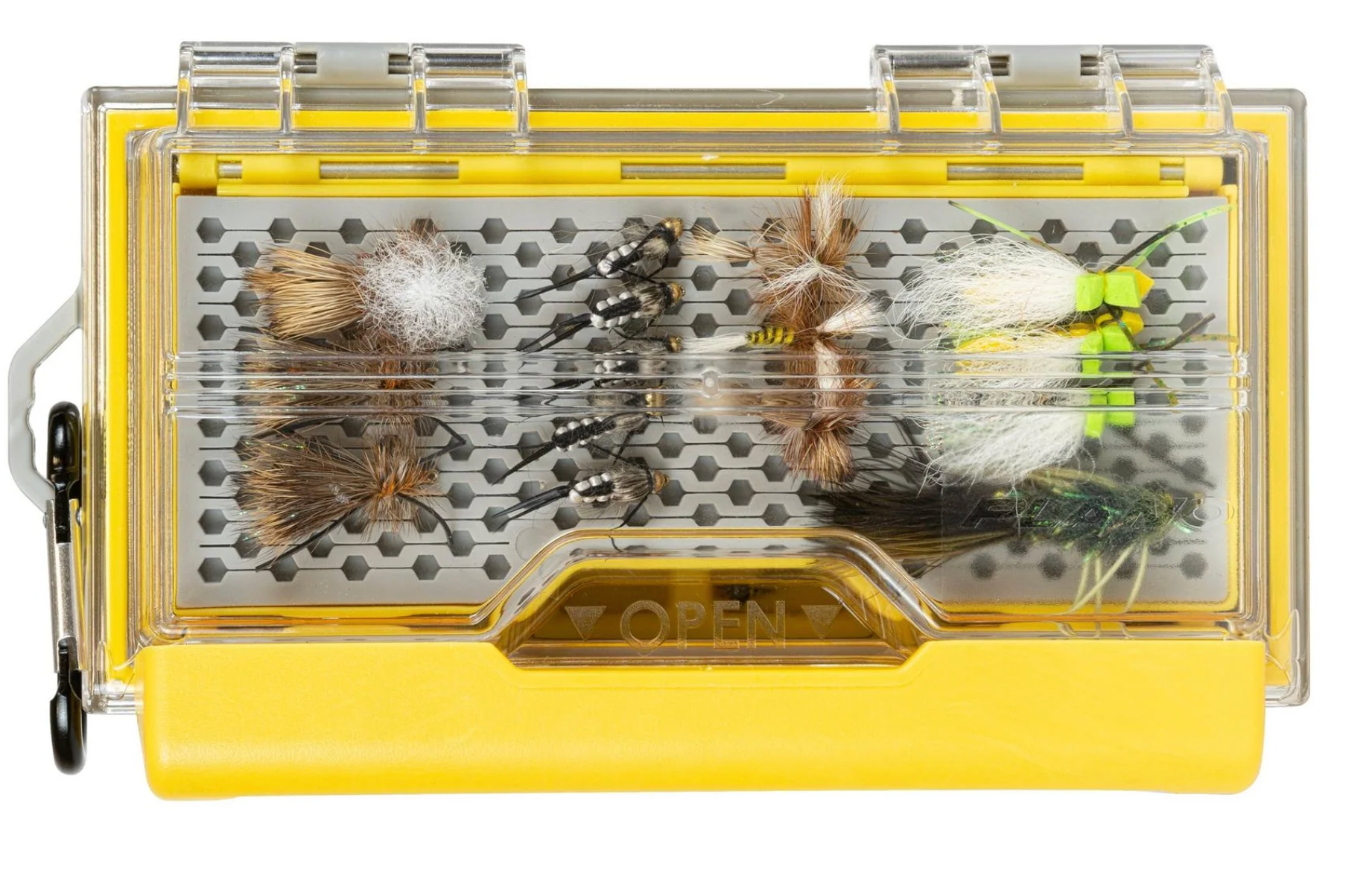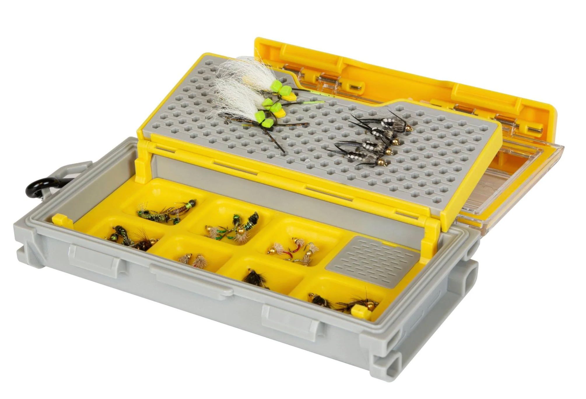 The Micro Fly Box offers three unique styles of bait storage in one compact platform. Up top, three different-sized fly retainers are molded to secure flies in an organized and easy-to-identify manner. The second layer boasts a soft pad that grabs onto tiny flies and jigs firmly. Down below, anglers will be delighted to find compartments to organize small baits and soft plasticsThree layers of soft and small-tackle storage, now in a pocket-sized Edge storage box.