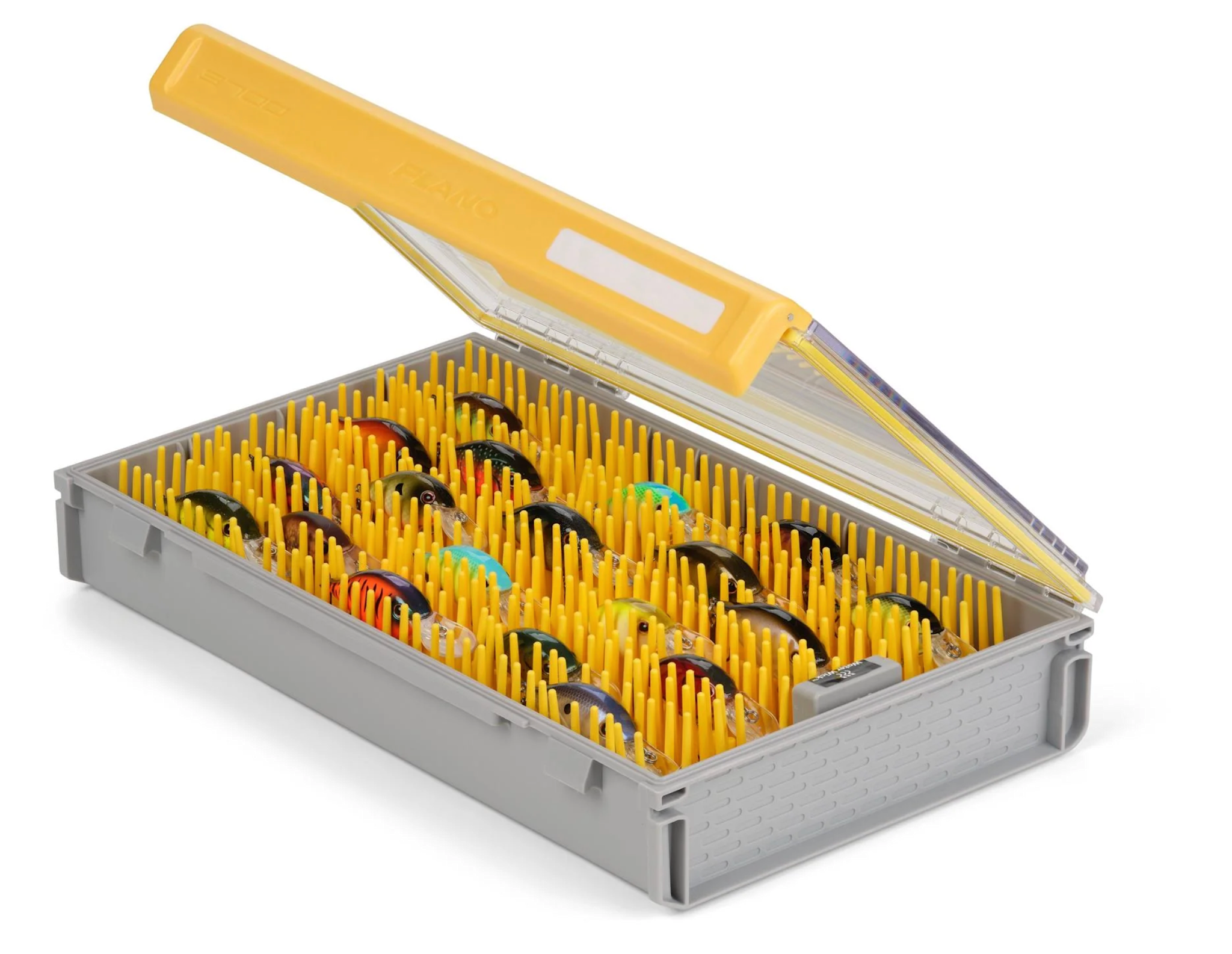 The Edge Master Crankbait premium tackle box features a new and innovative design specific to small crankbait tackle. This functional tackle box kit also includes Rustrictor® rust preventative in base, Dri-Loc watertight seal and is enforced with water-absorbing desiccant material for effective and safe tackle organization.Premium tackle box features a new and innovative design specific to small crankbait tackle, with customizable silicone "fingers" protect the lures, hooks, and finishes.