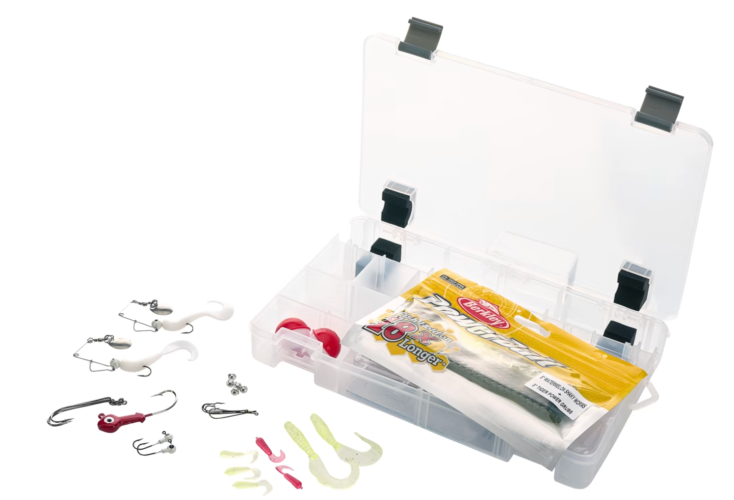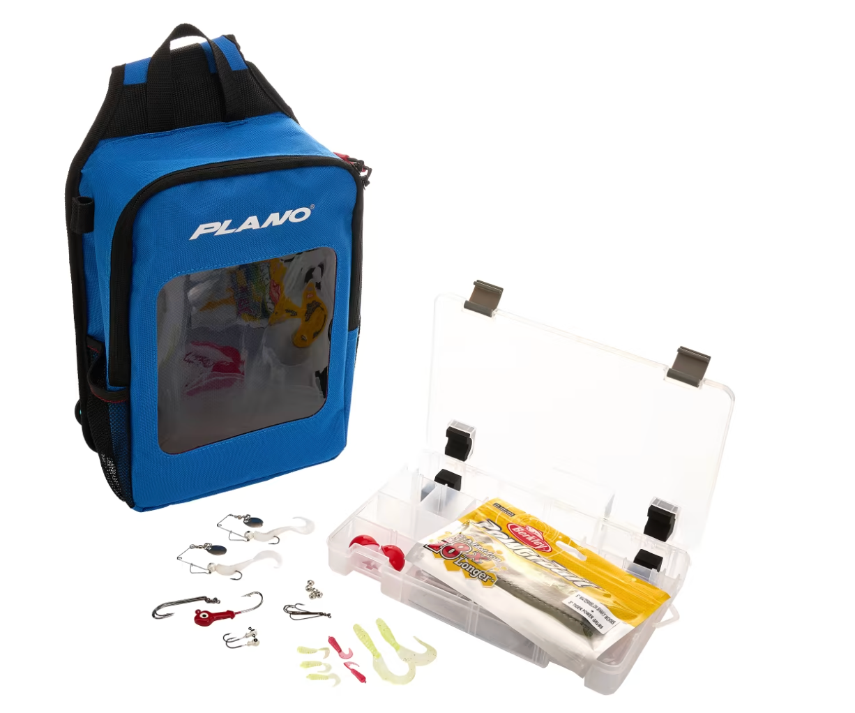 Whether you're new to fishing or a veteran that want to keep on-the-spot angling that's quick, easy, and portable, the Plano® Let's Fish® Sling Pack is sure to please. Its adjustable shoulder strap convert to accommodate right or left carry. The sling features an oversized and molded main zippered pocket, main side pocket, side-mounted tool holder, and a molded Plano zipper pull. Tackle kit includes: Berkley PowerBait along with hooks, jigheads, sinkers, and bobbers conveniently packed in a 3600 size StowAway box. Imported.