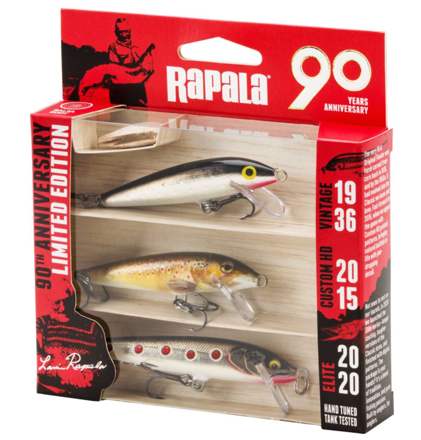 In celebration of Rapala’s 90th anniversary, we proudly present the Vintage Lure Kit, specially crafted for trout and perch fishing enthusiasts. The kit includes three unique lures: LIMITED EDITION ORIGINAL FLOATER 7 CM VINTAGE – Finished with star-patterned silver foil sides that shimmer enticingly in the light. This body type has been produced only once before, 20 years ago, making it a true collector’s item – available exclusively in this limited-edition set. ORIGINAL FLOATER 7 CM LIVE BROWN TROUT – The original 2015 print pattern, introduced as part of the first-ever Live series color launch. The realistic Brown Trout design has since become a favorite among anglers, particularly in clear-water fishing. FLOATER ELITE 8.5 CM LIMITED EDITION GILDED SILVER DIAMOND – The newest generation of the Floater Elite, combining premium finishing with a distinctive Gilded Silver Diamond color. This colorway is unavailable anywhere else and was developed exclusively to honor Rapala’s 90-year legacy.