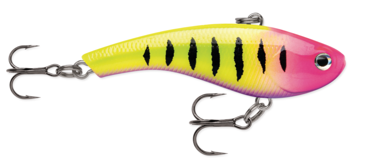 With quick rod snaps the Slab Rap® searches in wide, erratic directions, circling back to center after pause. Lift-drop motion creates subtle vibration on rise, followed by evasive side-to-side motion on the fall. Weight forward design enables a rocking action for triggering negative fish.