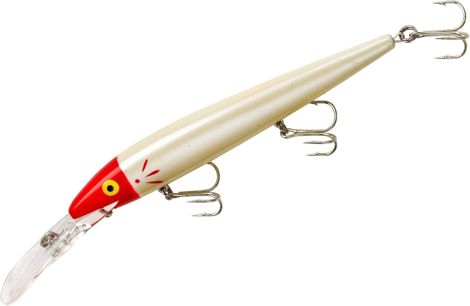 The Cotton Cordell Deep Diving Red-Fin is a legendary lure for a variety of gamefish, from bass and walleye in freshwater to specks and redfish on the coasts. For those times when you need to run the bait in deeper water, the CD9 Deep Diving Red-Fin reaches 10 feet and entices fish with a wide wobble (straight retrieve) or an erratic panicked minnow when retrieved with a twitch-twitch-pause retrieve. The Deep Diving Red-Fin is also an effective trolling lure for big walleyes, white bass, striped bass and more. Tough construction and top-quality components keep the Deep Diving Red-Fin at the top of the list for anglers coast-to-coast.
