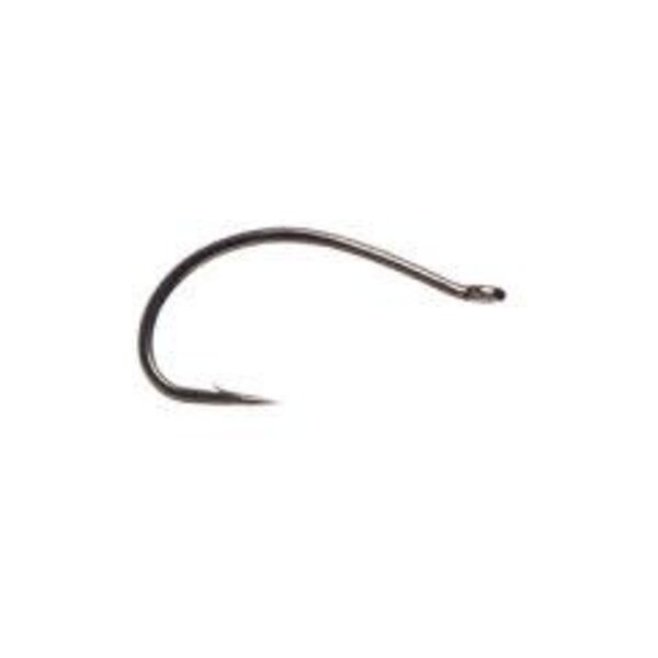 A curved hook with a heavy wide-gape, continuous bend, and an up-eye. Made 1X strong with a bronze finish and a mini-barb. Great for tying scuds, shrimps, grubs, pupae, and San Juan worms.