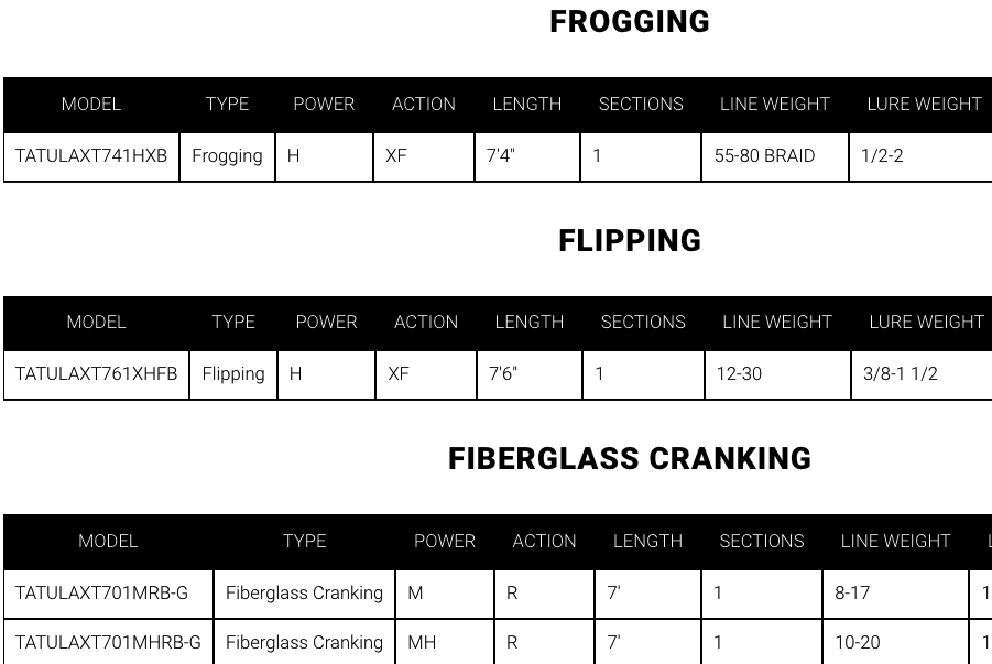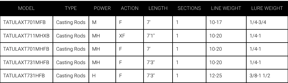 Redesigned and upgraded, the brand new Tatula XT Bass Rods feature lightweight and powerful HVF (High Volume Fiber) graphite blank technology, X45 Bias and Braiding-X blank construction to prevent rod twist for longer casts, added sensitivity and more hook-setting power. The series also includes two glass blank casting rods designed ideally for medium to larger size crankbaits. Tatula XT casting and spinning rods feature EVA-style split grips and Daiwa’s exclusive light and sensitive Tatula carbon nut reel seat. high end quality at a price that won't break the bank.