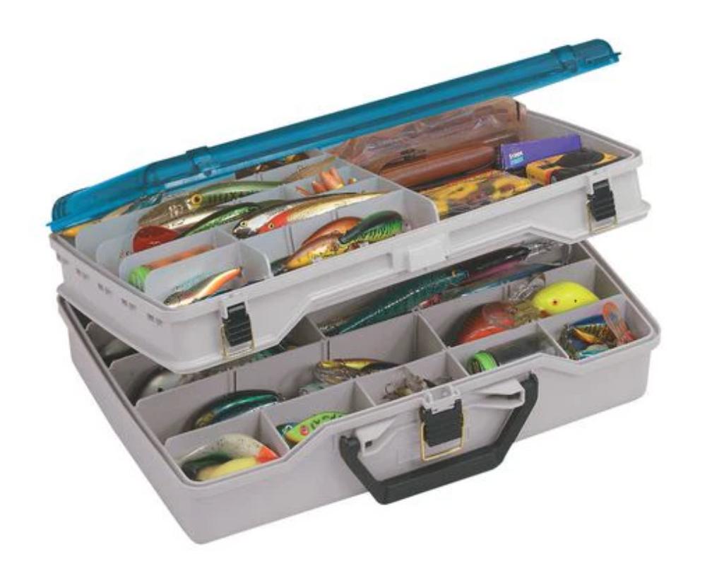 Plano®'s 1155 Tackle Satchel sports see-through DuraView lids for quick access to your baits in this two-tiered storage box. Dimensions: 16.9" x 5" x 12".