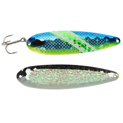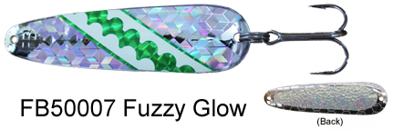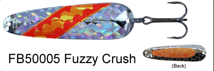 The Dreamweaver Fuzzy Bear Spoon is a top-tier trolling spoon designed for serious anglers targeting salmon and other big game fish. With its more significant profile and highly reflective finish, this spoon combines irresistible action with an eye-catching appeal to trigger aggressive strikes. Whether you're competing in a tournament or just out for a big catch, the Fuzzy Bear Spoon should be an option in every angler's trolling spoon assortment. The Dreamweaver Fuzzy Bear Magnum Spoon is more than just a lure; it's a strategic advantage that taps into the predatory instincts of game fish. Its combination of size, action, and visual appeal makes it a critical component of any successful trolling setup.