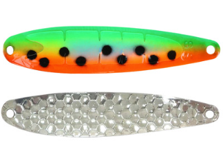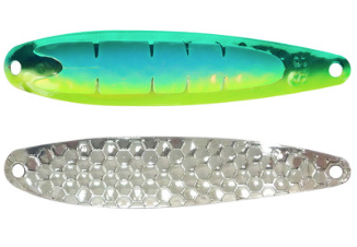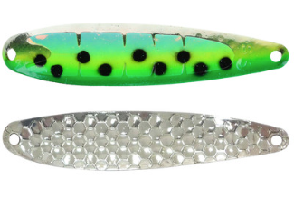 Dreamweaver Super Slim Spoons are designed and tested by professional fishermen to give the best possible action. DW Super Slims are the spoon of choice for anglers throughout the Great Lakes and ocean. Every spoon is hand-painted and assembled in the USA to ensure you receive a quality product. The finishes have been tried and tested for the last 15 years and are simply the toughest out there. The Super Slim Spoon has a unique side-stepping action that steelhead, lake trout, coho, and chinook salmon cannot resist. The Dreamweaver's light-reflecting micro hex pattern makes the SS model glimmer. The Super Slim Spoon is hand painted with finishes that catch and reflect light like bait fish scales. Testing for the last 15 years has proven its durability. DW Spoons are simply the toughest. The SS is a versatile performer at all depths, day in and day out – get your Super Slim Dreamweaver Spoons here!