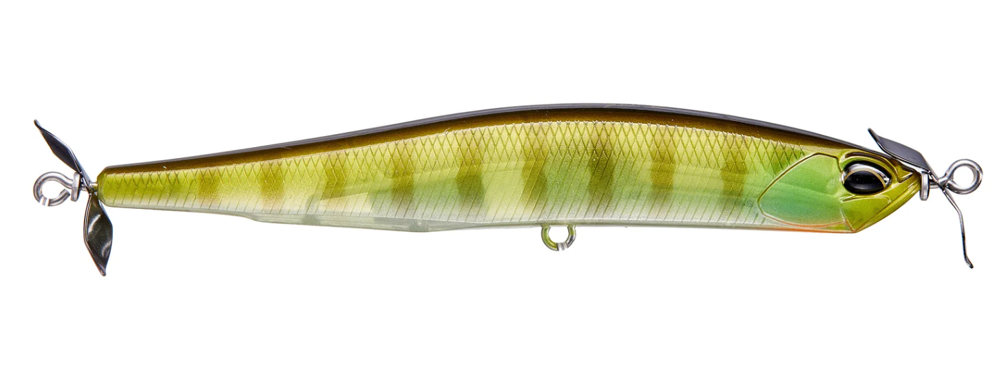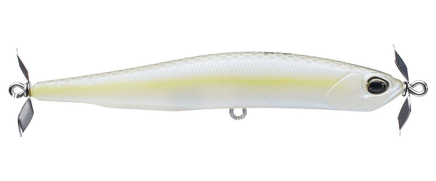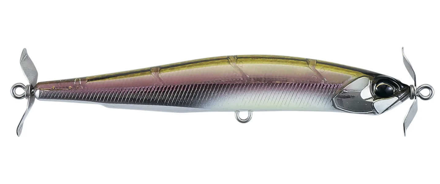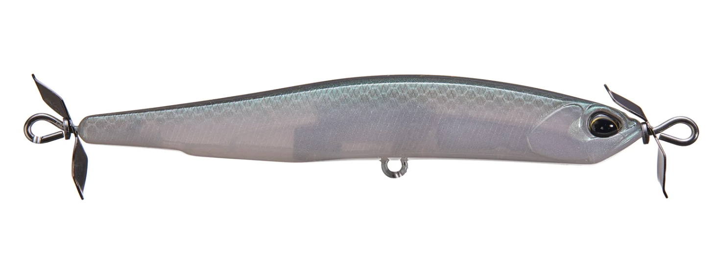 Built to with two smooth-running props, the Duo Realis Spinbait Spybait Series offers all the right attributes for light line finesse techniques, including the Japanese technique of "spybaiting." The technique of "spybaiting" requires light line, a long-distance cast, and a sinking style bait that can be crawled back to the boat. It takes patience and refinement but is incredibly effective, especially in pressured fisheries. Sculpted with flat sides and a tall profile, the Duo Realis Spinbaits deliver more flash than ever before, while still maintaining the signature rolling action that makes them so effective for spybaiting.