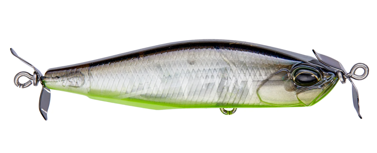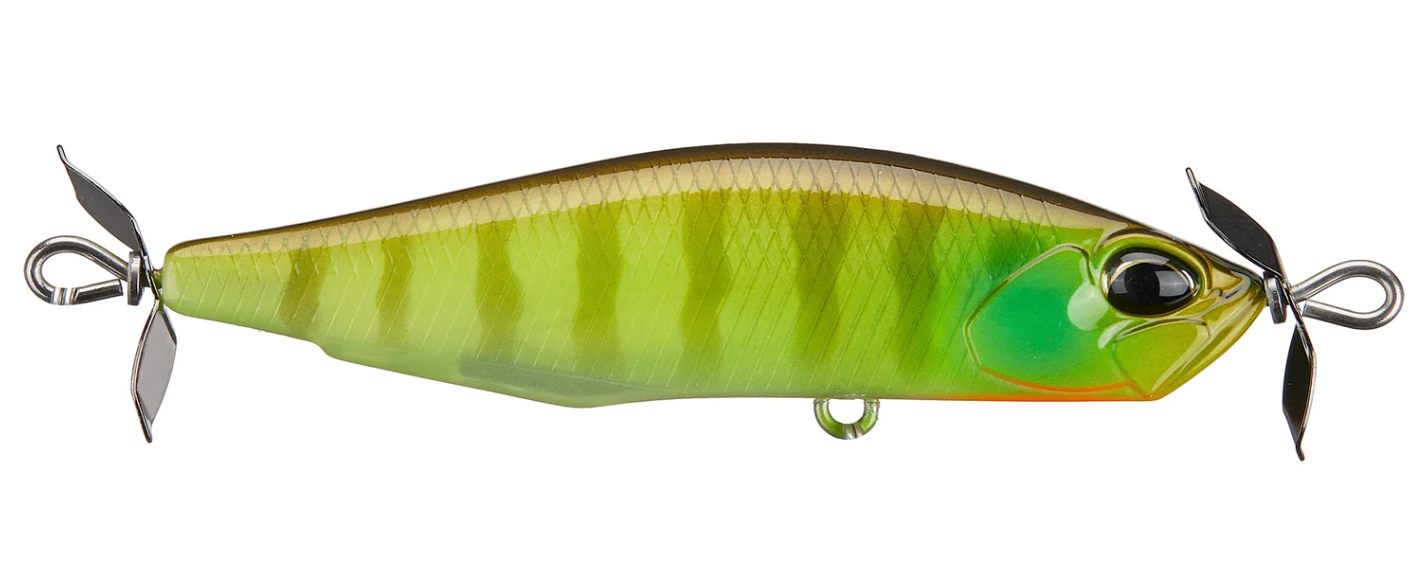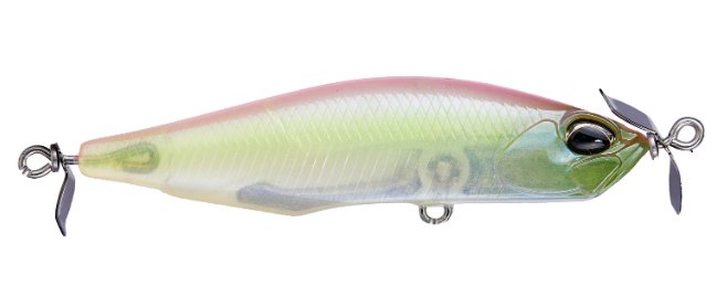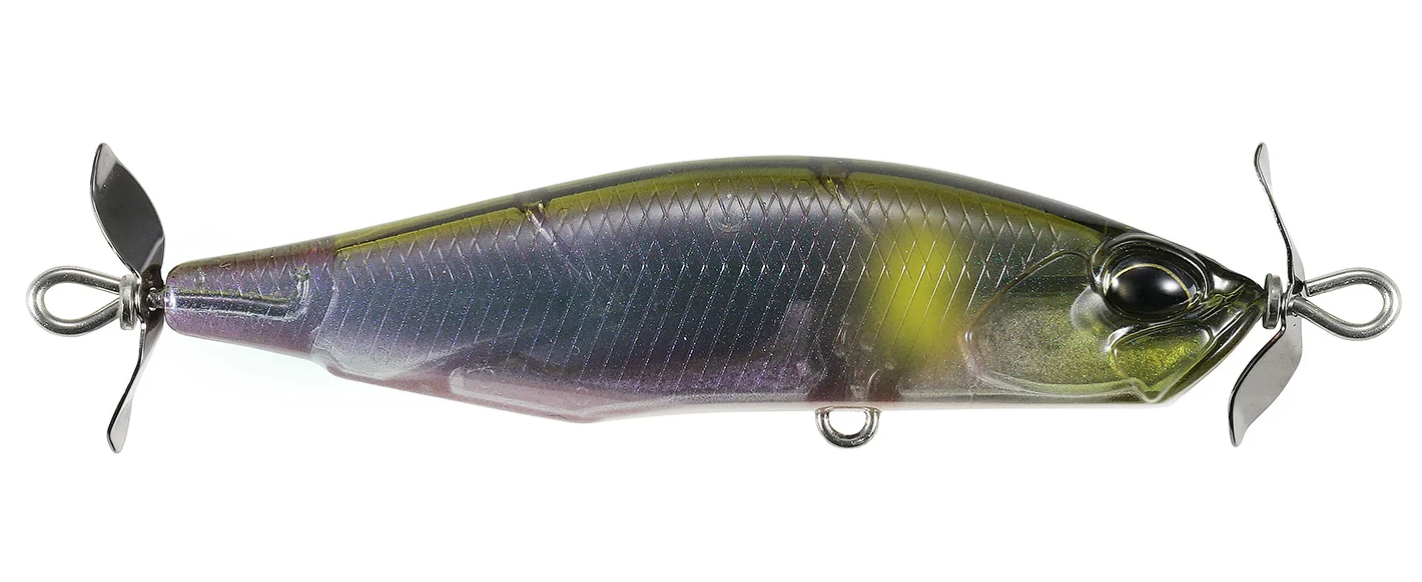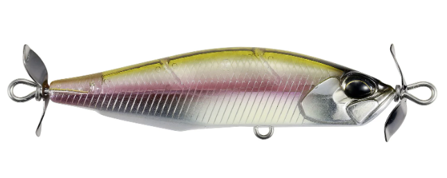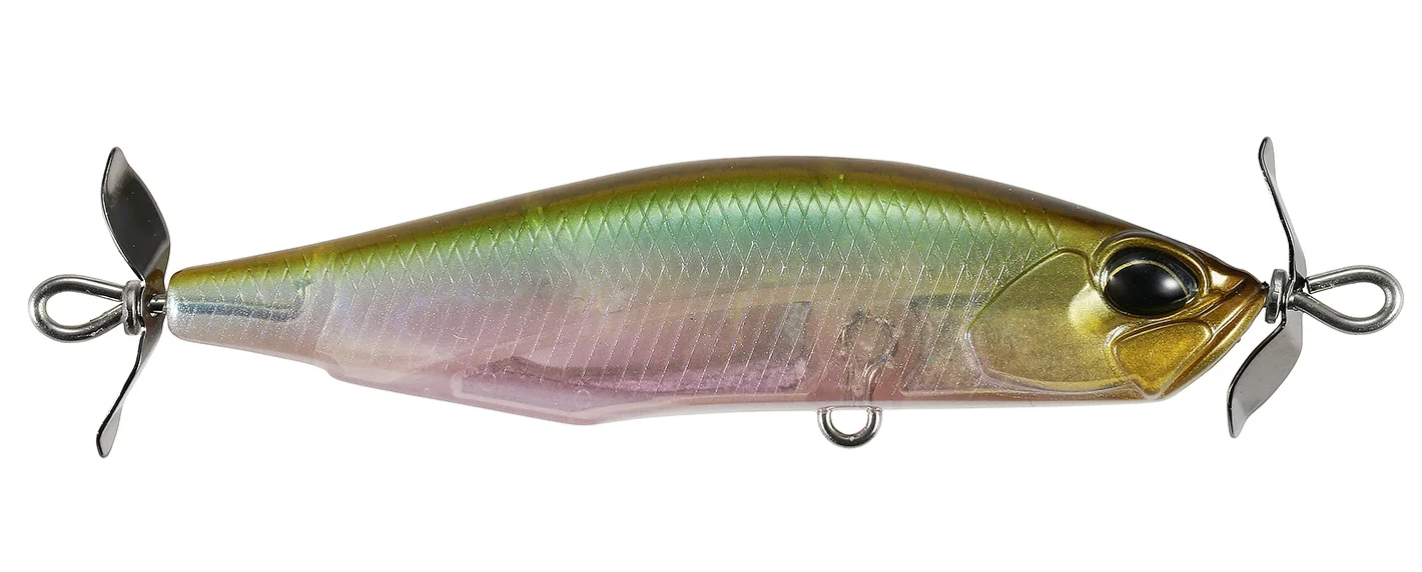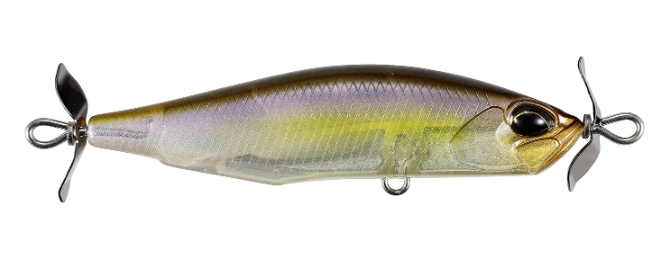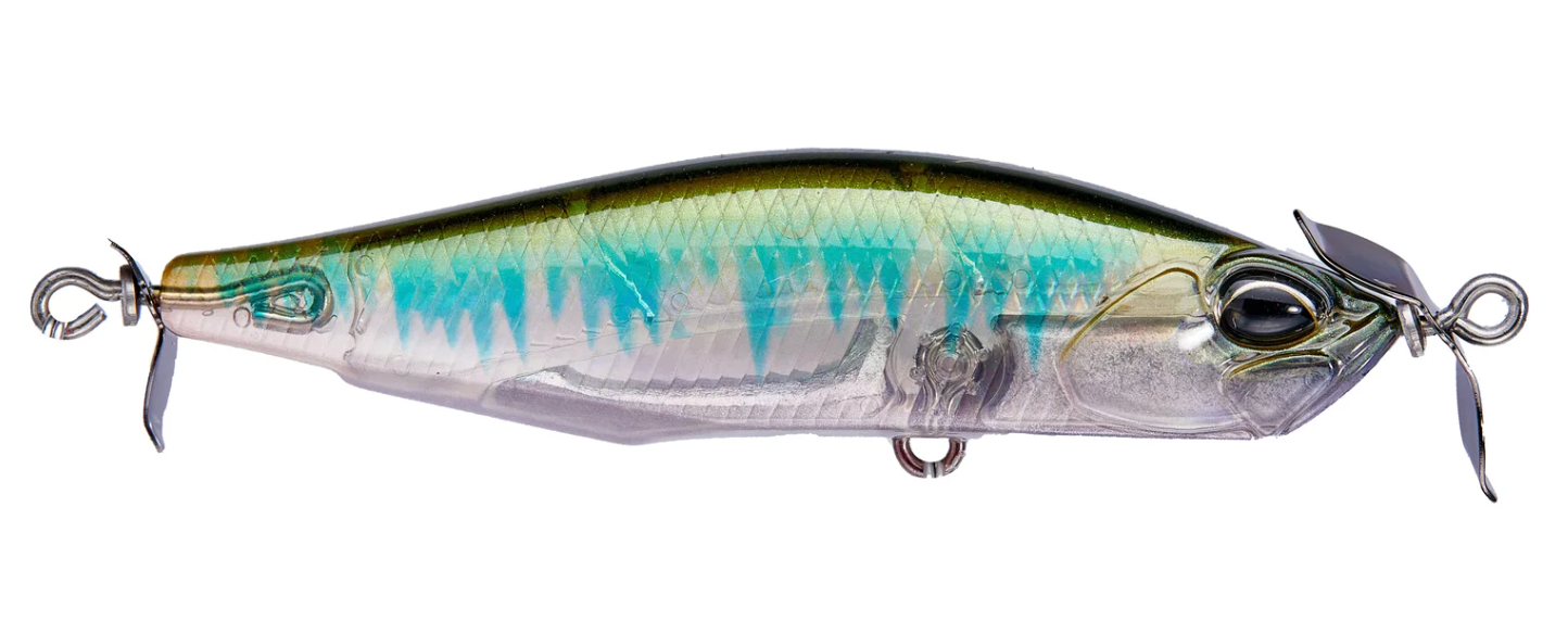 Spawned form the creative mind of famed lure designer, Masahiro Adachi, the Duo Realis Spinbait 78 Alpha Spybait joins the highly successful Duo Realis Spinbait family and offers a meatier profile that will grab the attention of big shad hungry bass. Molded with a shorter and wider body than the original Spinbait, the Duo Realis Spinbait 78 Alpha Spybait is very heavy for its size, giving anglers phenomenal casting distance and an increased rate of fall to target fish in deeper water or strong river current conditions. The propellers on the front and the back also produce the signature “spybait” action, which generates a heavy body roll and strong pulsation that is unlike any other lure on the market and triggers aggressive bites from fish. On the sink, the Duo Realis Spinbait 78 Alpha Spybait features an internal fixed ballast, which allows the bait to produce a tight wobbling action as it descends through the water as well. Complete with two razor-sharp treble hooks, the Duo Realis Spinbait 78 Alpha Spybait delivers quality and performance that is second-to-none.