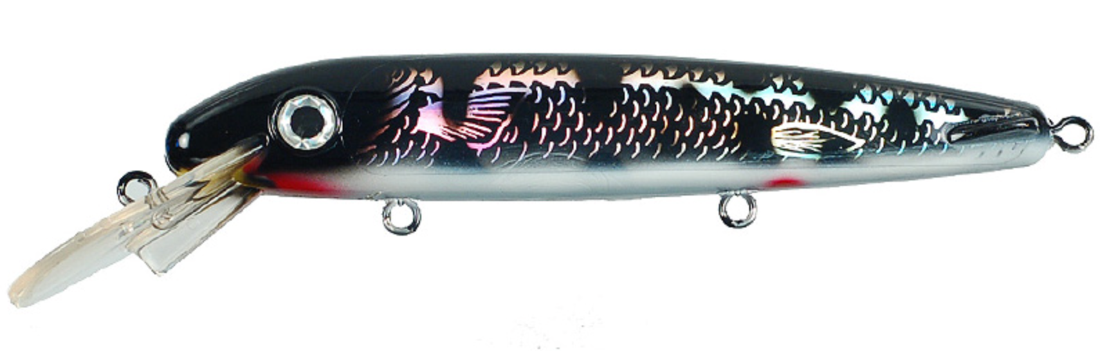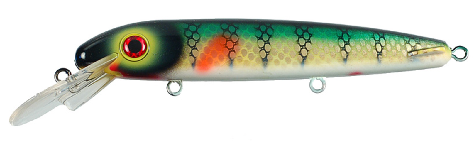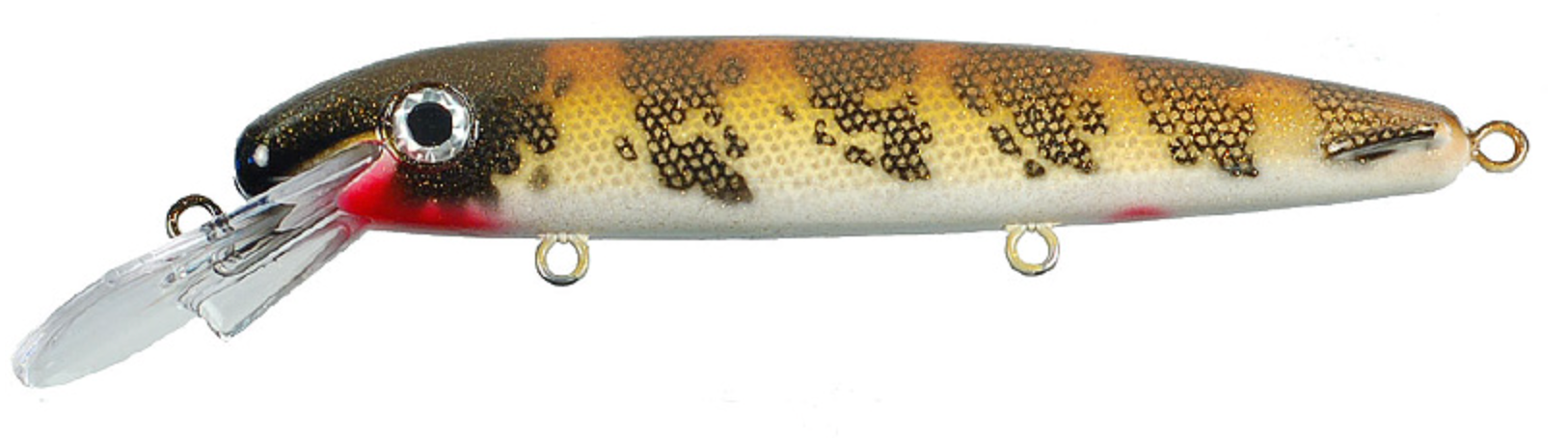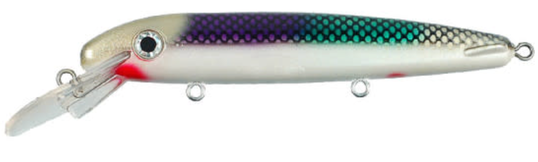 Double D™ (a shallower cousin of the Triple D™) is actually a “Jerkbait in Disguise.” ERC has combined the roll and flash of traditional crankbaits with darting, gliding action of jerkbaits to produce a truly multifunctional lure that excels in many casting and trolling applications. The secret to the Double D is its near neutral bouyancy. This characteristic allows pauses that keep the lure in the strike zone longer and triggers neutral and inactive as well as active fish.