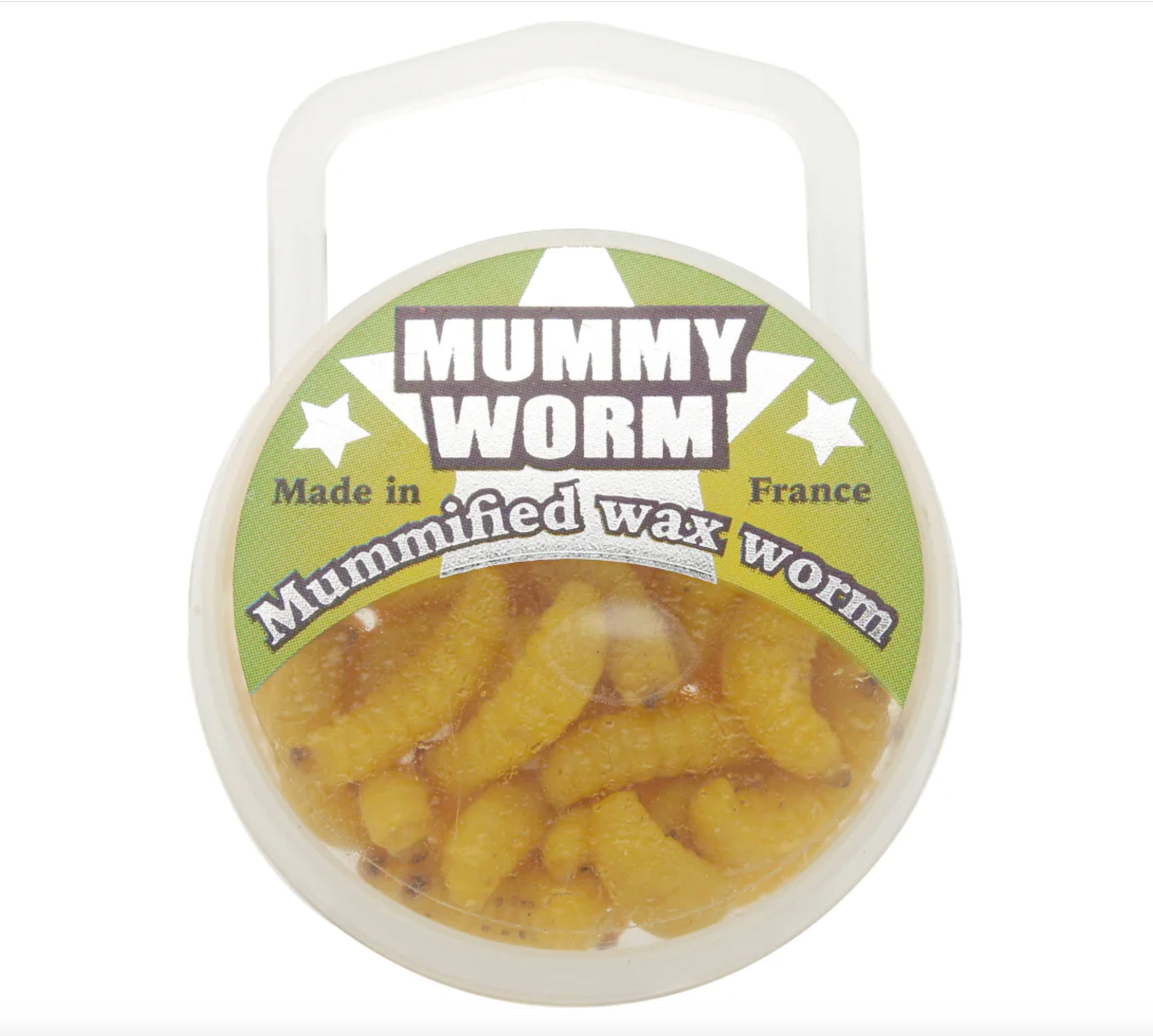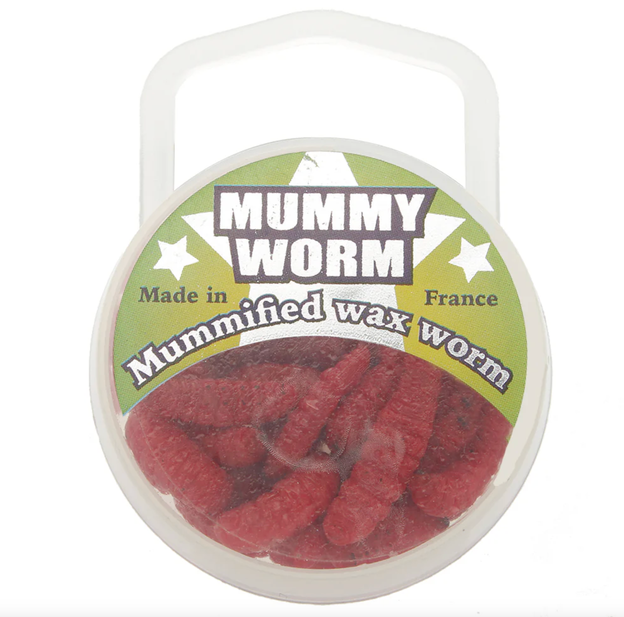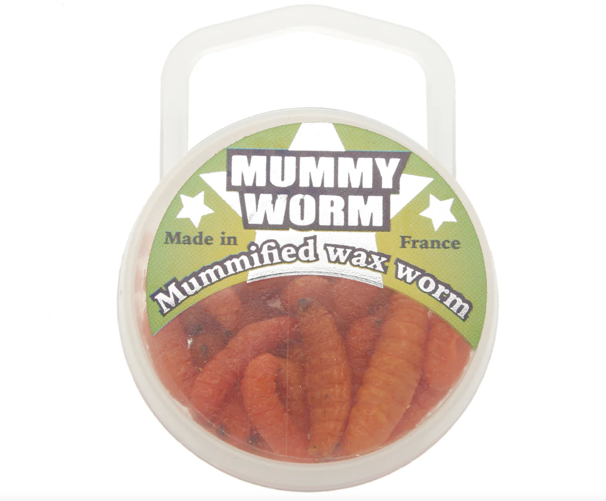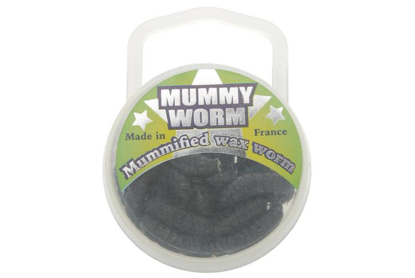 The Mummy Worm is a natural wax worm raised, colored and mummified on a French farm. The secret method of preserving allows the wax worm to maintain its characteristics for 2 years.