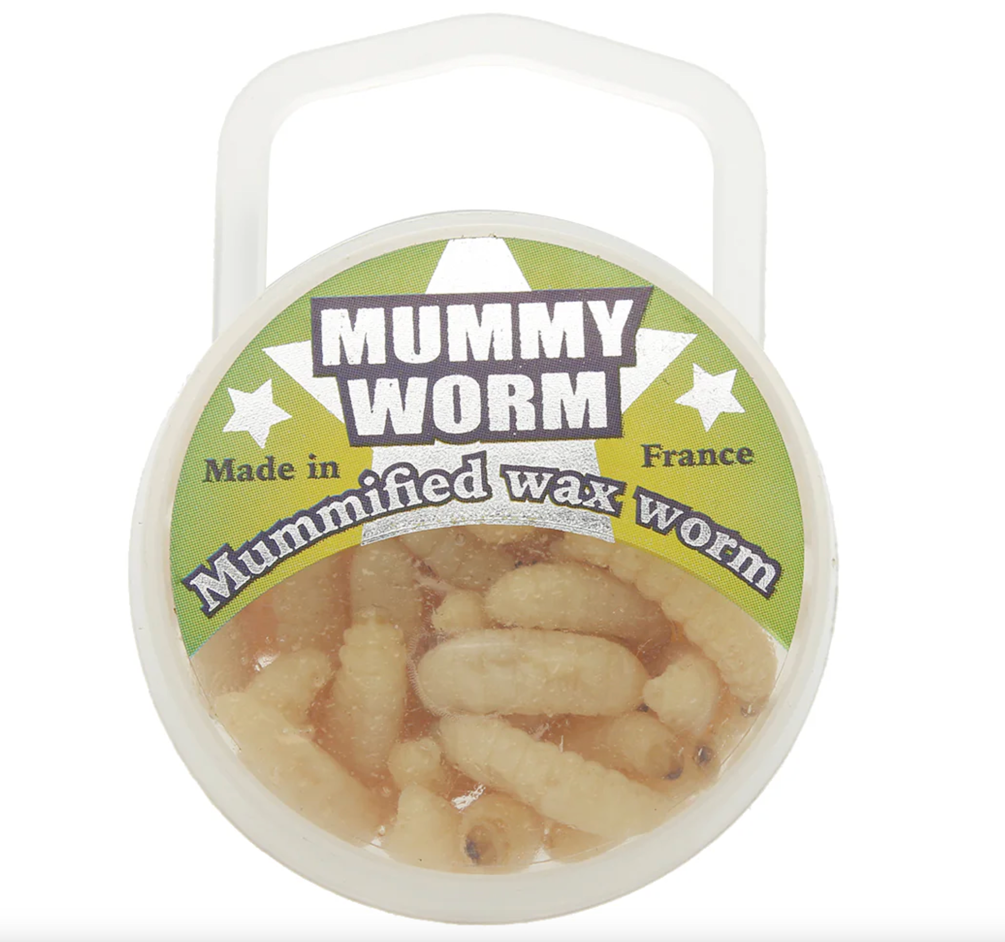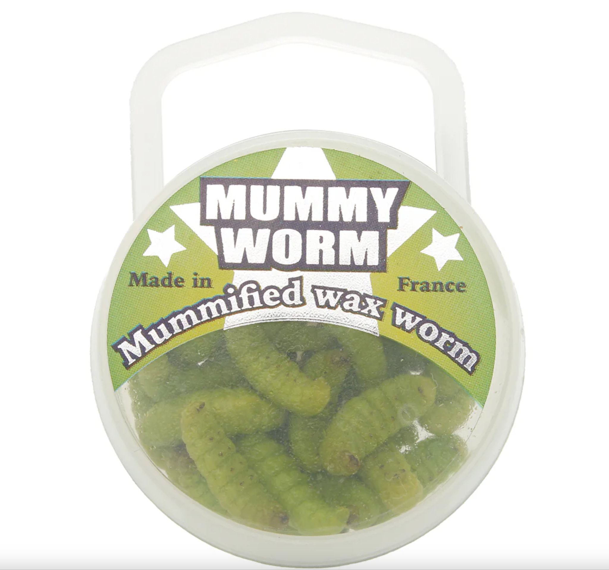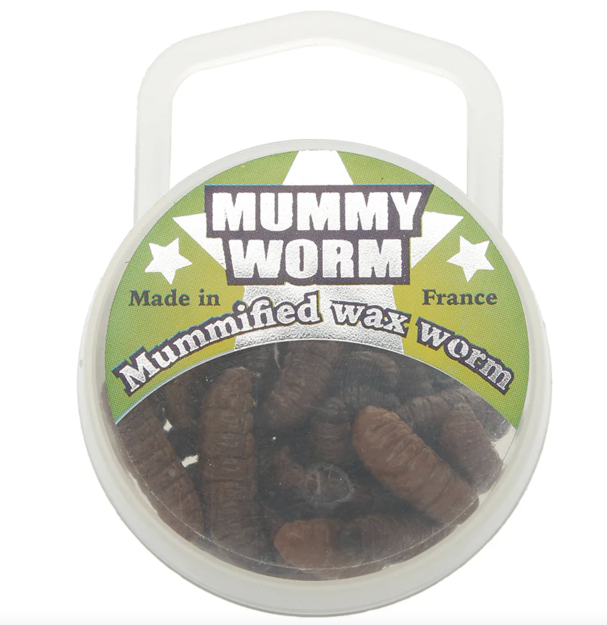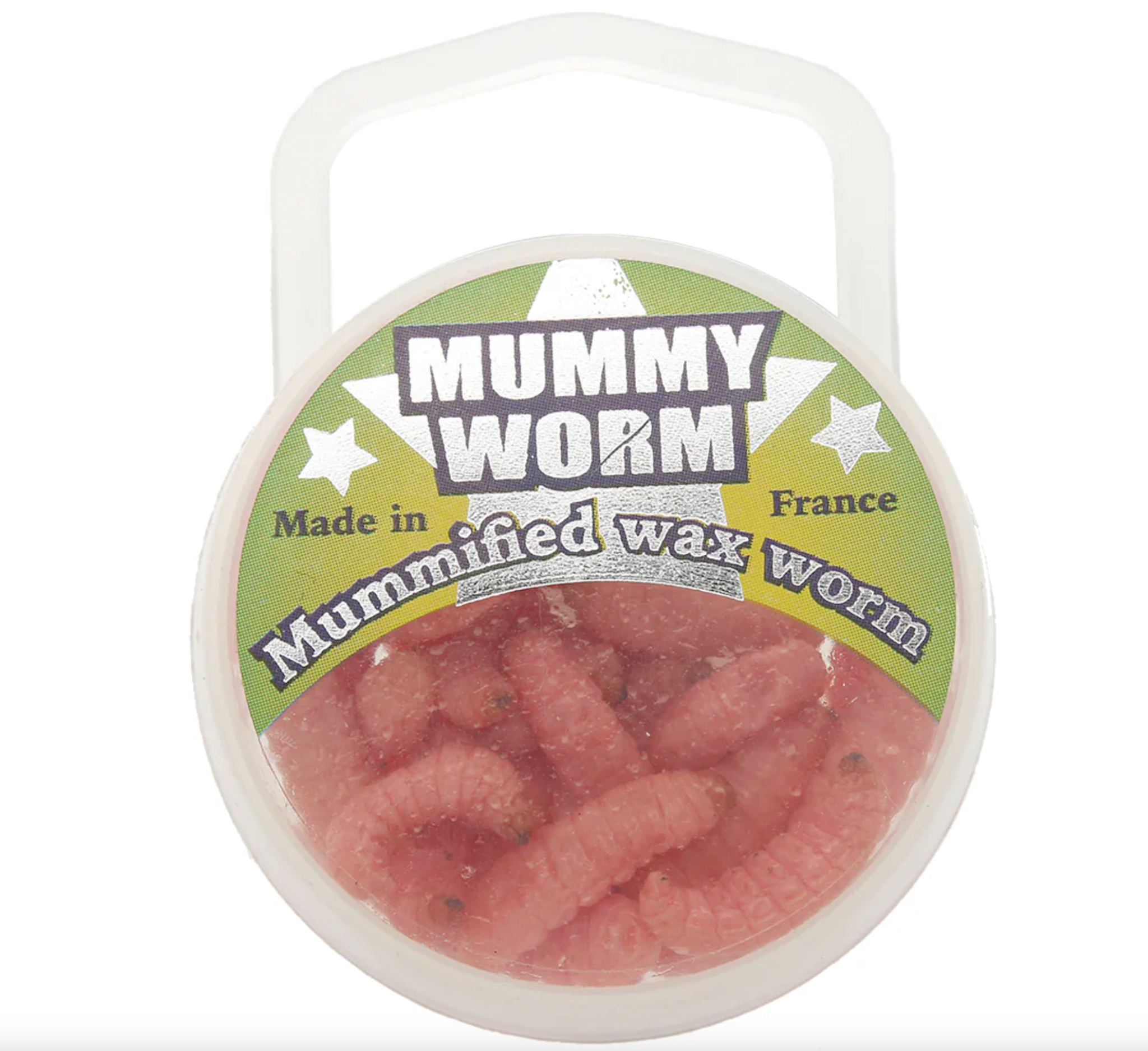 The Mummy Worm is a natural wax worm raised, colored and mummified on a French farm. The secret method of preserving allows the wax worm to maintain its characteristics for 2 years.