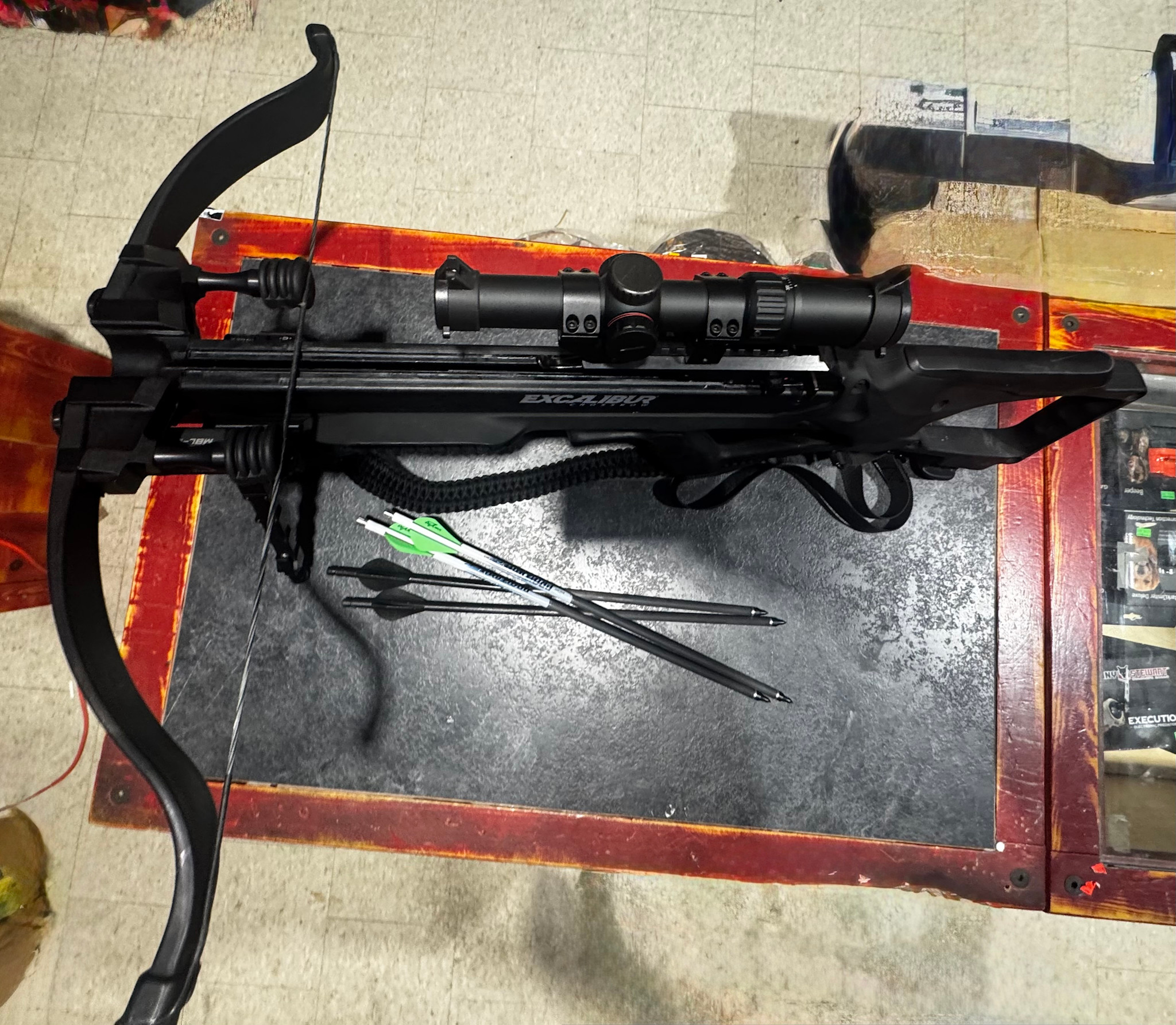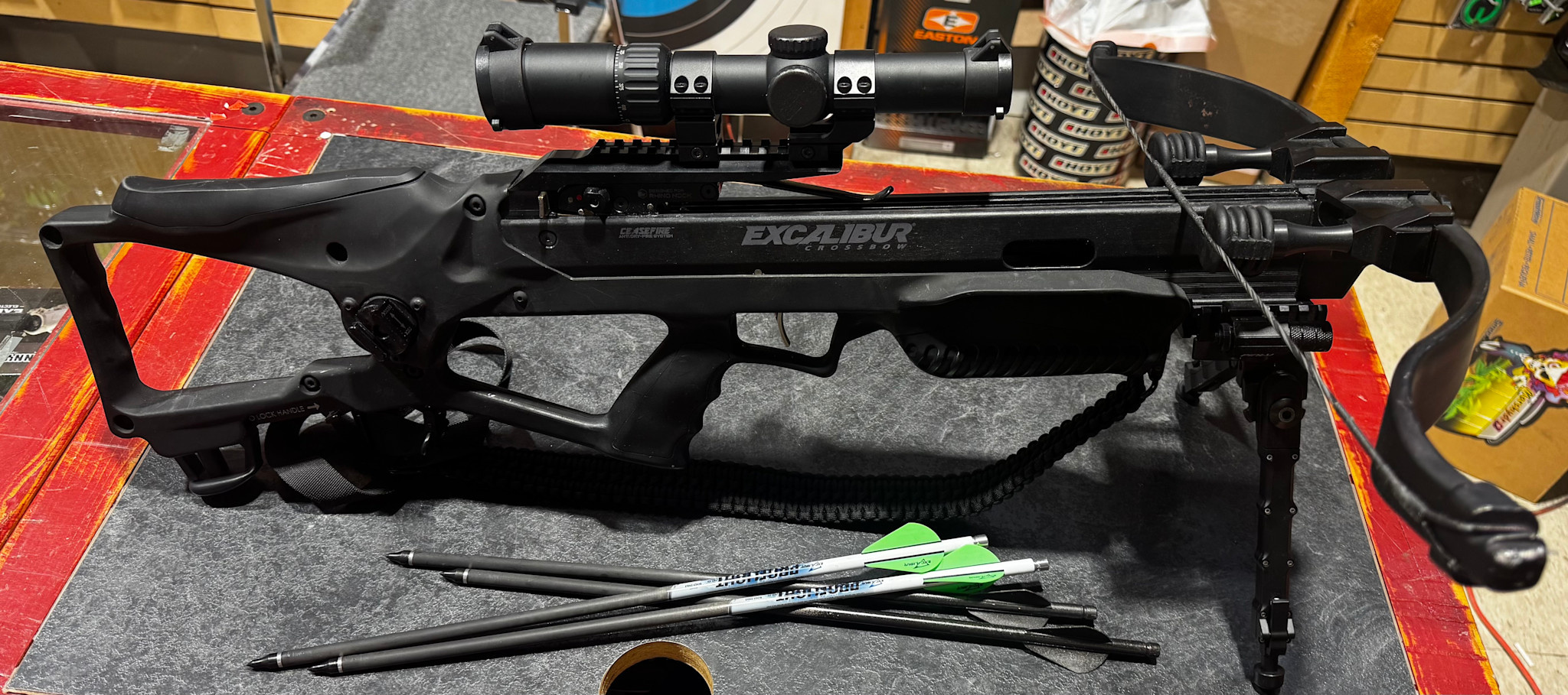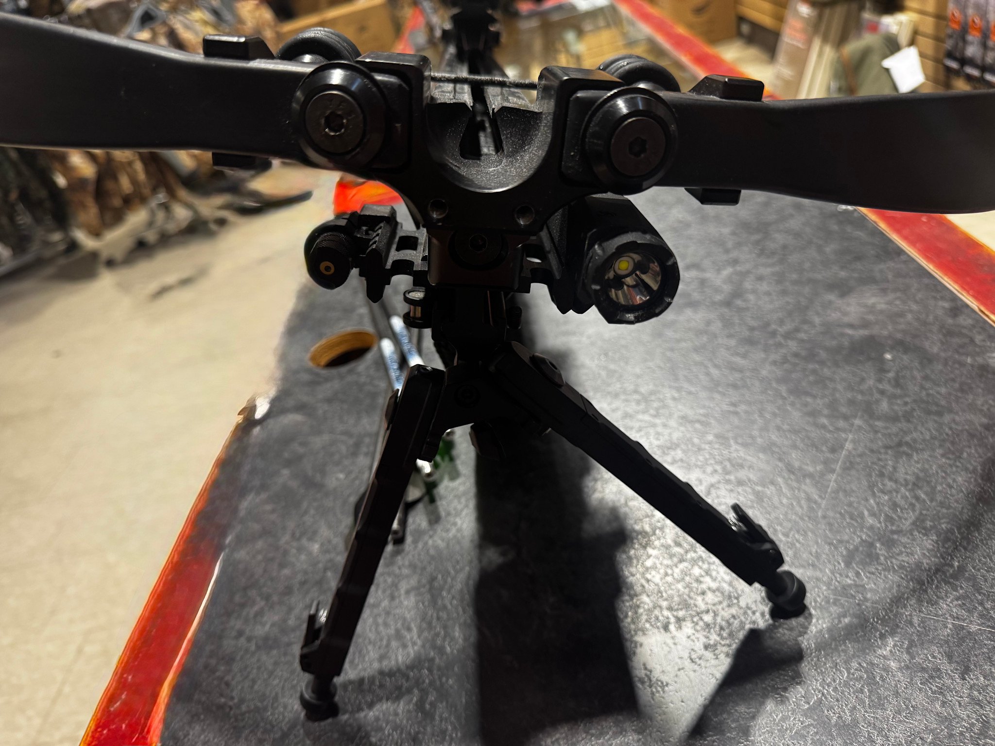 Comes with quiver and string release cable and has a few attachments. Already mounted