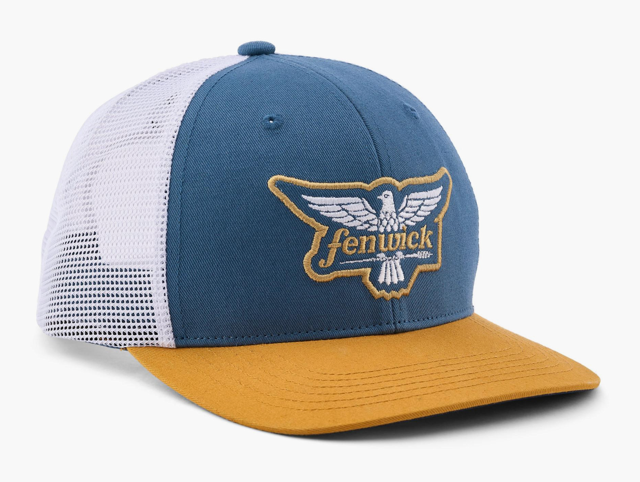 The Fenwick Twill Front Tri-Color Trucker Hat is built from durable twill fabric, breathable mesh panels and a snapback closure for a custom fit. The recycled plastic visor board adds an element of sustainability, while the tonal embroidered logo on the front makes a impact.