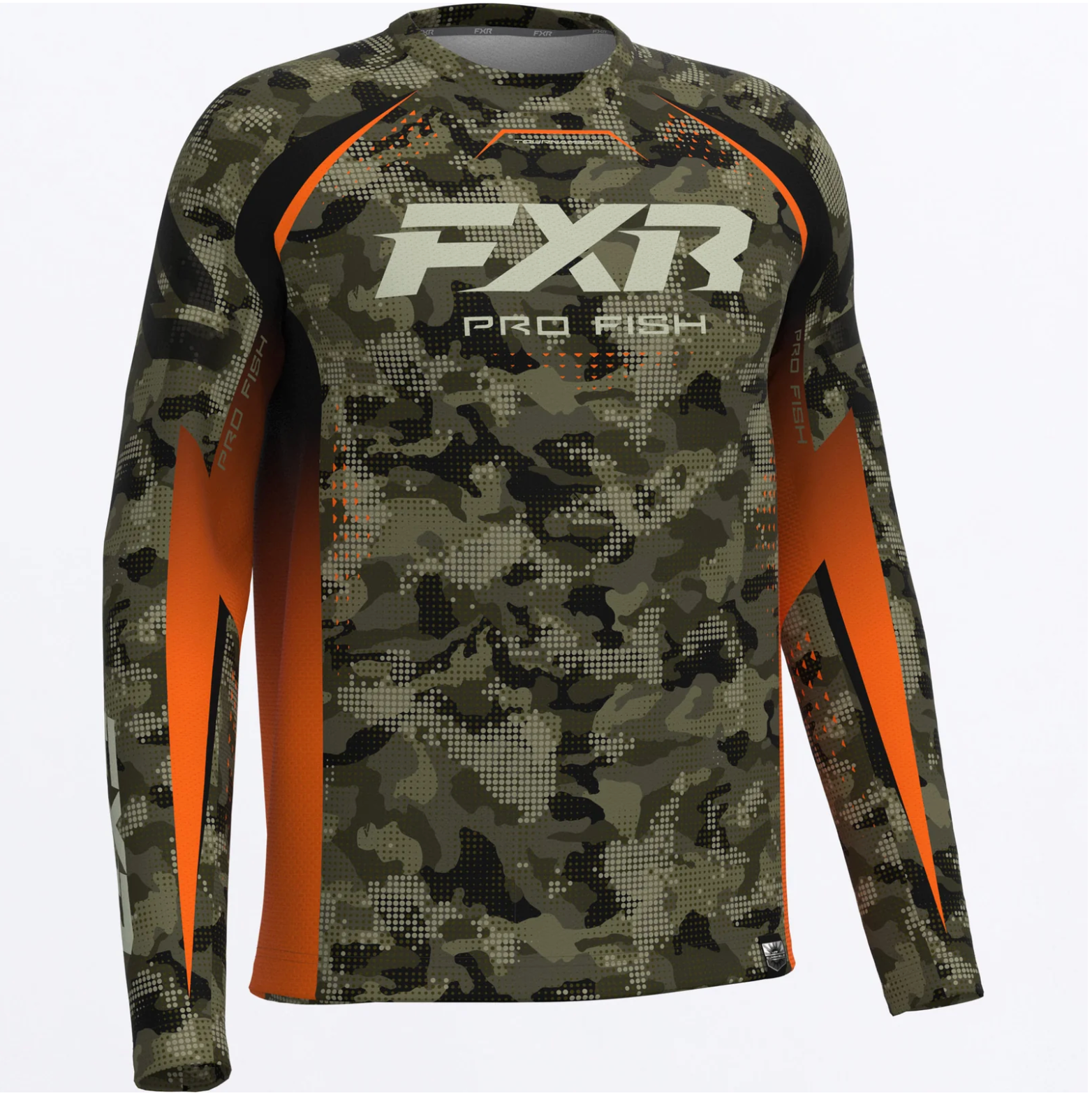 FXR Men's Tournament Air UPF Longsleeve Moss Drift Camo/Orange
