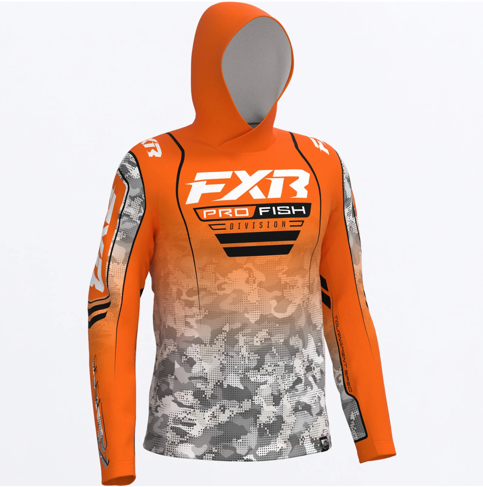 FXR Men's Tournament Air UPF PO Hoodie Orange/White Drift Camo