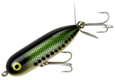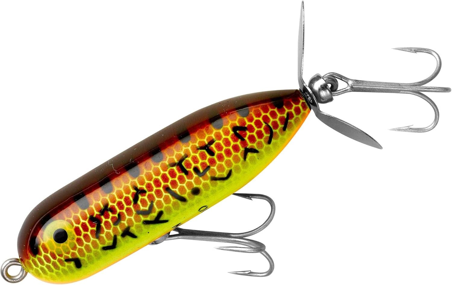 The Heddon Baby Torpedo is a proven topwater bait that smallmouth and largemouth bass can't resist. Its single prop spins and spits water. The Baby Torpedo can be worked slowly with twitches and pauses, or reeled constantly at a medium retrieve like a buzzbait. In rivers, work the bait in shallow shoreline water, in eddies, near submerged rocks and in fast-moving riffles for giant smallmouth. In ponds and lakes, pause the Torpedo near wood and weed cover, gently twitching it to entice big largemouth.