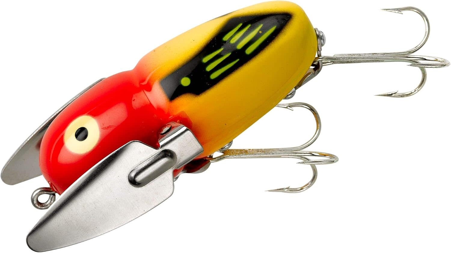 The Heddon Crazy Crawler is a wild acting topwater lure that literally crawls across the surface, creating a trail of splashes as it goes. Their perfectly tuned metal wings slash from side-to-side to create a cadence on the water that drives all species wild.