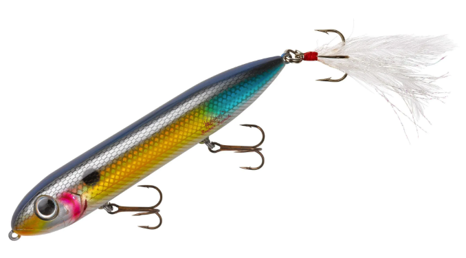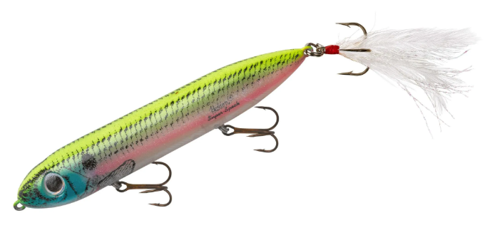 Every angler who loves top water fishing owns a Super Spook or Super Spook Jr, but for years anglers have added feather treble hooks to add a little bit extra attraction to garner more bites. We went ahead and added this to our best colors to save you time and money from having to buy your own or tie them up! In addition to the feather dressed rear treble, we added wide gap thin wire treble hooks to create easier walking and lock fish in tight when they bite.