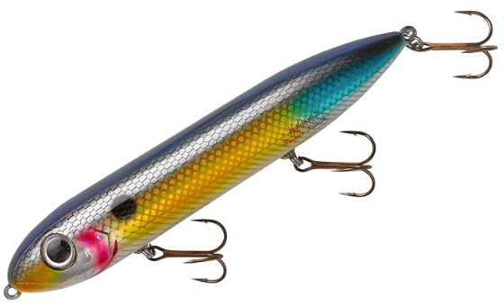 The backbone of the famous Heddon Zara Spook family is the Super Spook. The 5-in Super Spook boasts three super-sharp hooks giving this model 30% more hooking power especially important for schooling stripers and other hard charging species.
