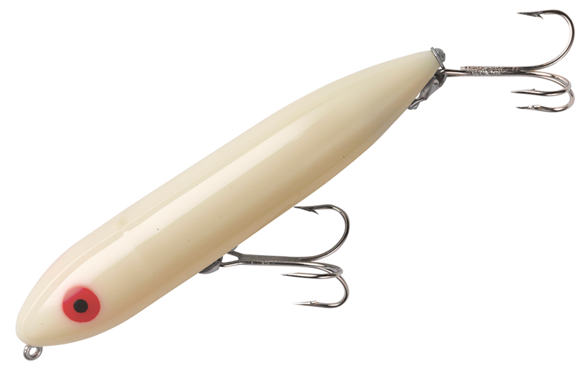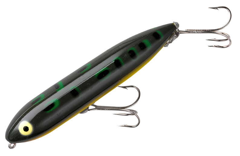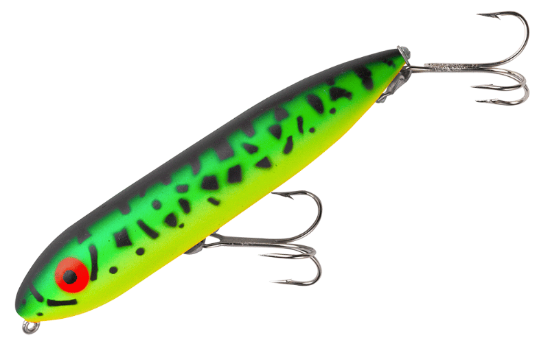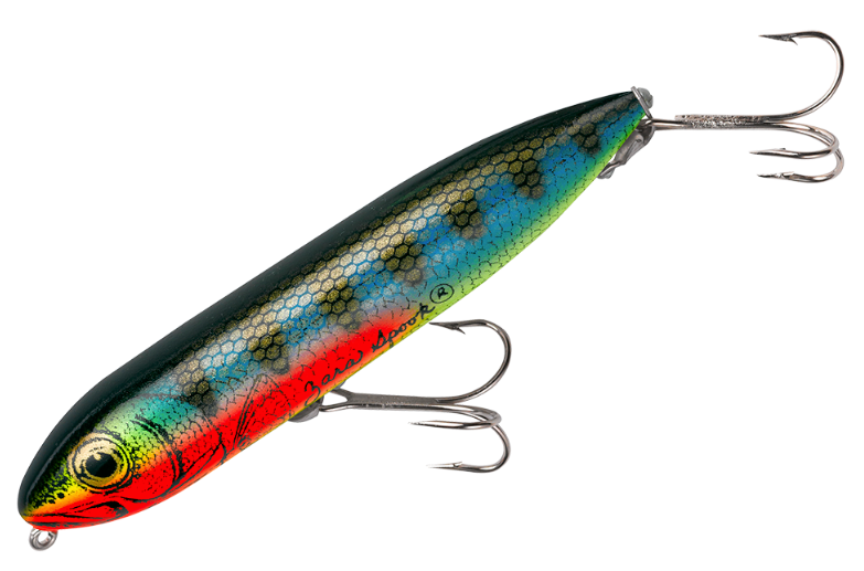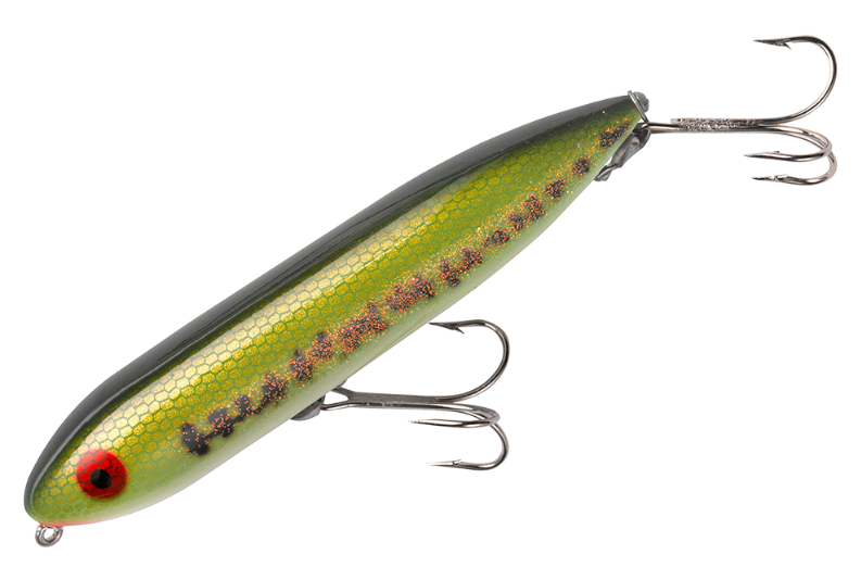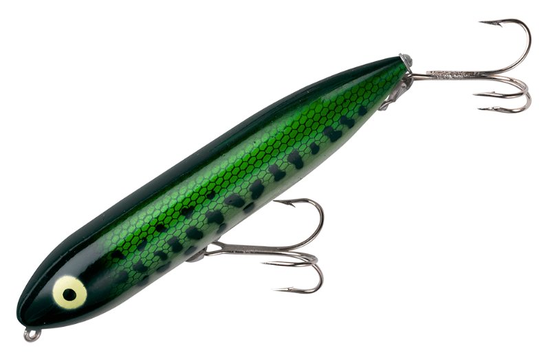 To fish a Heddon Zara Spook, one sets a rhythmic, slack-line retrieve that makes the Zara walk from left to right, back and forth. The Zara Spook's legendary walk-the-dog action calls fish from great distances, prompting explosive strikes every time. Superb for pike and bass fishing.