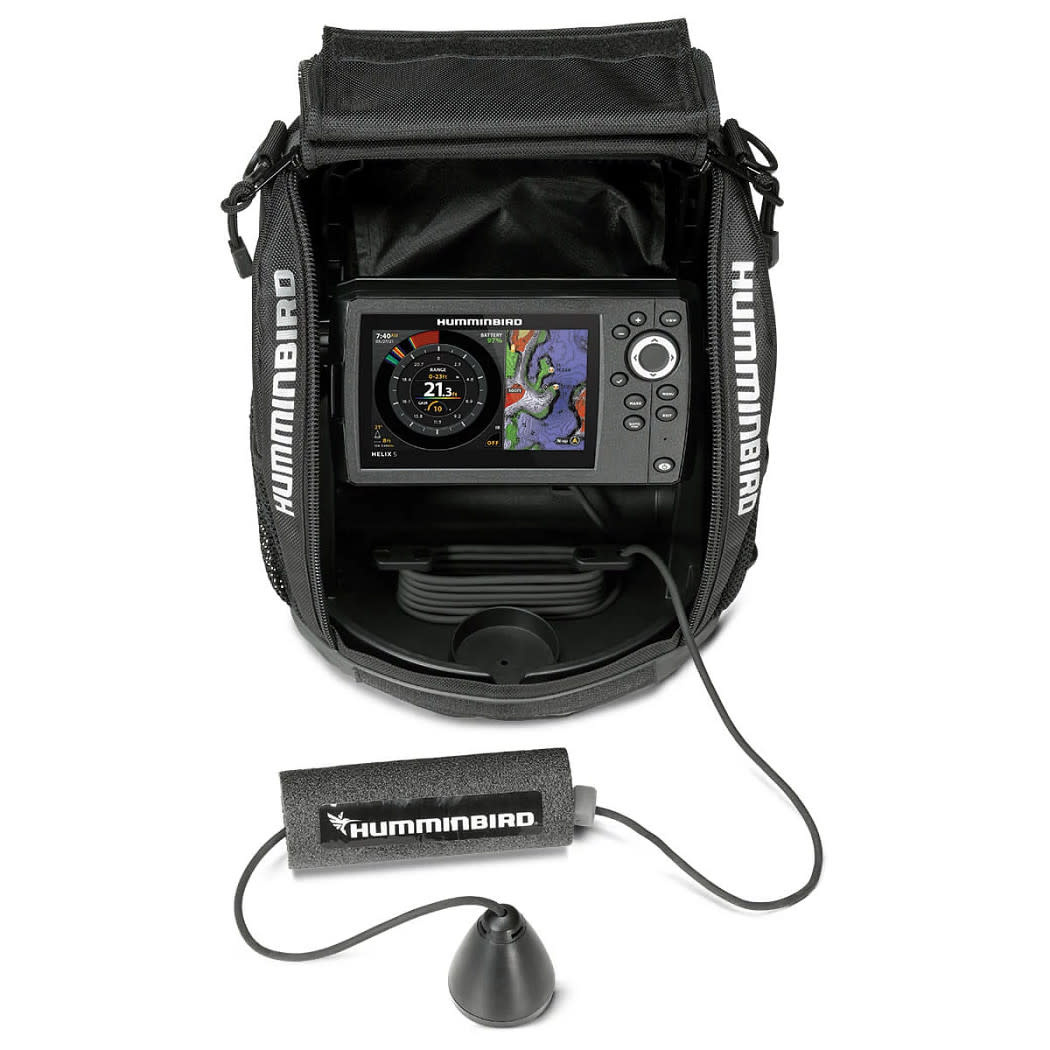 Portable Shuttle and Carrying Case: The soft-sided carrying case and shuttle mount protect your Humminbird ICE HELIX for safe transport and include built-in cable and transducer management.