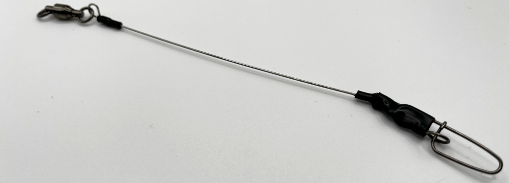 These leaders feature 180 lb Single Strand Malin Stainless Steel Wire, #5 Stay-lok Snap, and #5 ball bearing swivel.